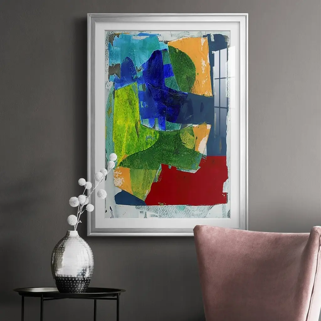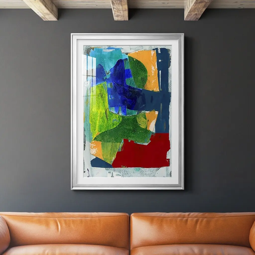 Brights Strokes II Premium Framed Print - Ready to Hang A Premium Framed Print created to last. Framed in distressed wood and available in an array of sizes and colors Featuring a beveled a solid wood stretcher bar, each piece comes ready to hand 4 SIZES AVAILABLE 30.5''X42.5'' - Overall Size 26.5'X36.5'' - Overall Size 22.5''x30.5'' - Overall Size 18.5''x24.5'' - Overall Size Each piece is made to order. Each piece comes with hanging hardware. Made in the USA Ready to Hang Giclee Paper Print Acrylic Glass Beveled Matt Board