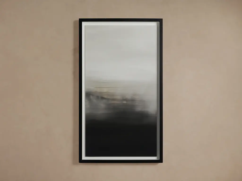 Your ready to hang artwork is printed on canvas then stretched and mounted to a 2-inch thick - hand stained black wood frame. Arrives at your door complete with an easy to use self-leveling hangking kit.