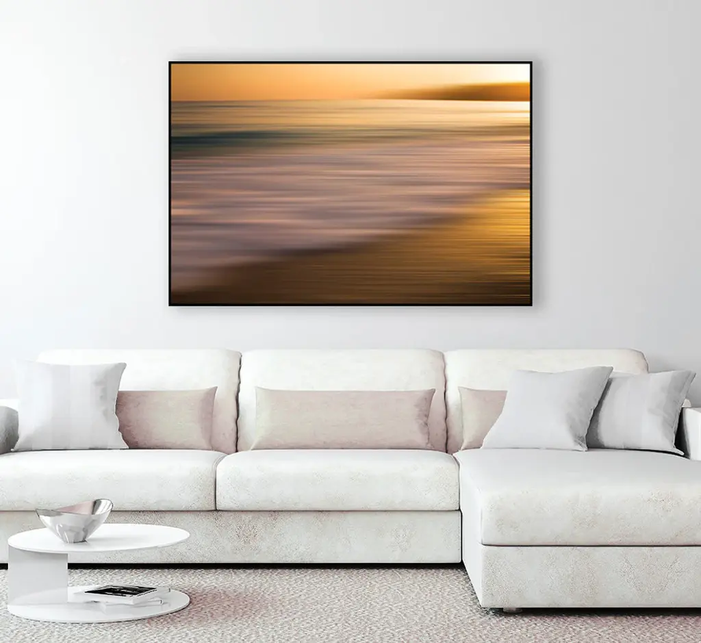 Your ready to hang artwork is printed on canvas then stretched and mounted to a 2-inch thick - hand stained black wood frame. Arrives at your door complete with an easy to use self-leveling hangking kit.