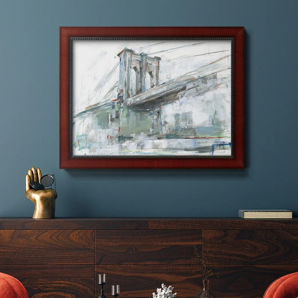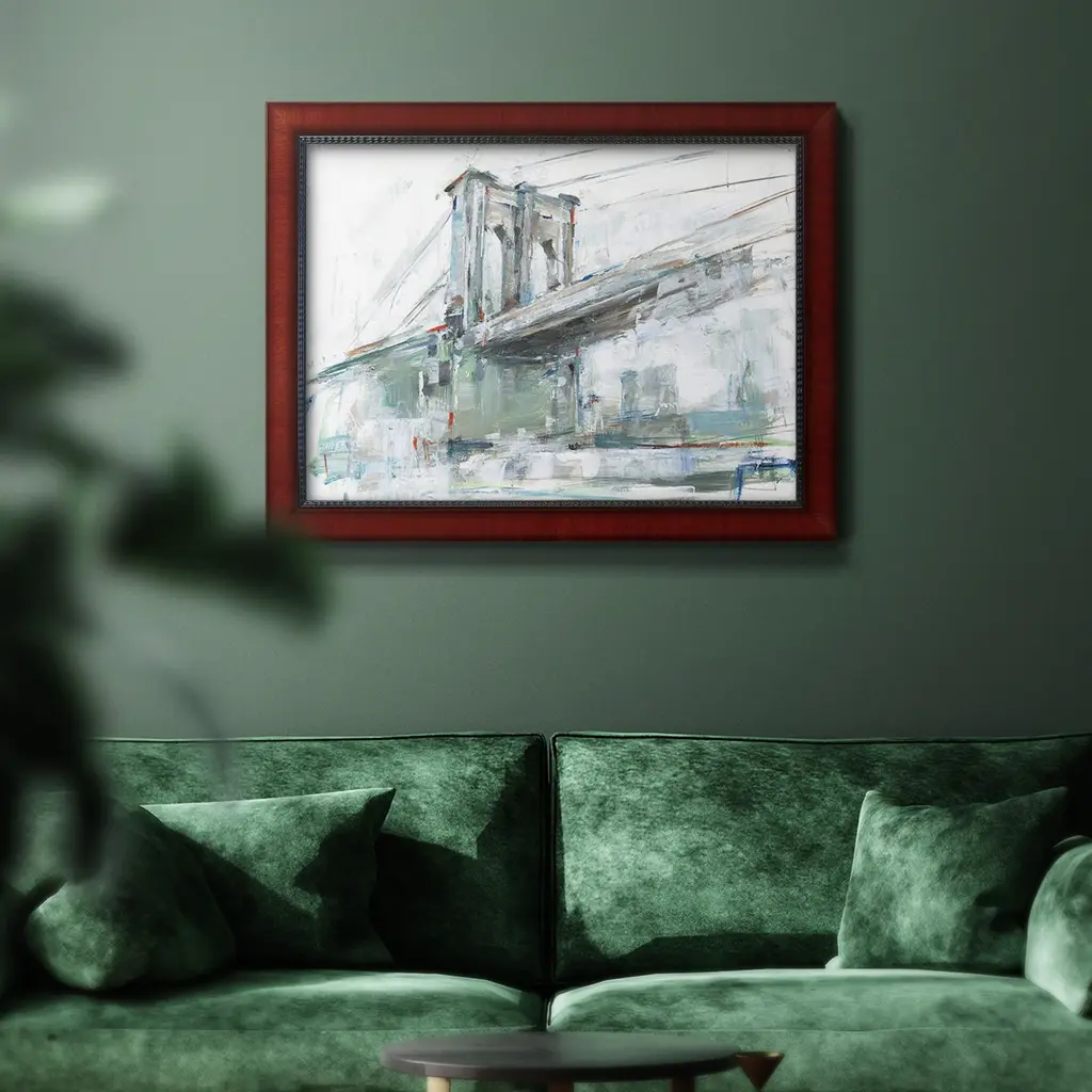 Brilliant City Study III Premium Framed Canvas- Ready to Hang A Premium Framed Canvas created to last. Framed in distressed wood and available in an array of sizes and colors Featuring a beveled a solid wood stretcher bar, each piece comes ready to hand 3 SIZES AVAILABLE 16''X20'' - Overall Size 18'X27'' - Overall Size 24''x36'' - Overall Size Each piece is made to order. Each piece comes with hanging hardware. Made in the USA Ready to Hang Giclee Paper Print Acrylic Glass Beveled Matt Board