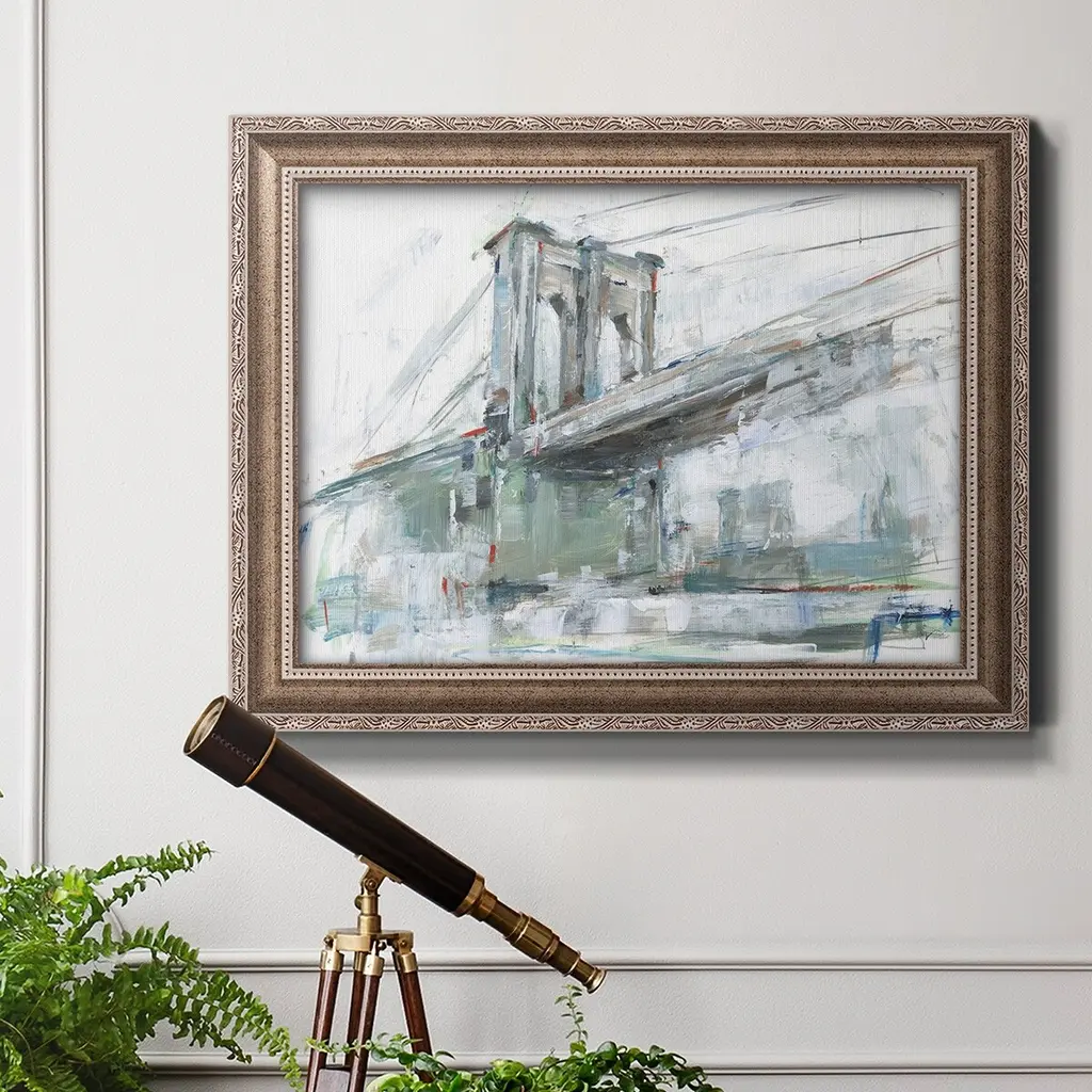 Brilliant City Study III Premium Framed Canvas- Ready to Hang A Premium Framed Canvas created to last. Framed in distressed wood and available in an array of sizes and colors Featuring a beveled a solid wood stretcher bar, each piece comes ready to hand 3 SIZES AVAILABLE 16''X20'' - Overall Size 18'X27'' - Overall Size 24''x36'' - Overall Size Each piece is made to order. Each piece comes with hanging hardware. Made in the USA Ready to Hang Giclee Paper Print Acrylic Glass Beveled Matt Board