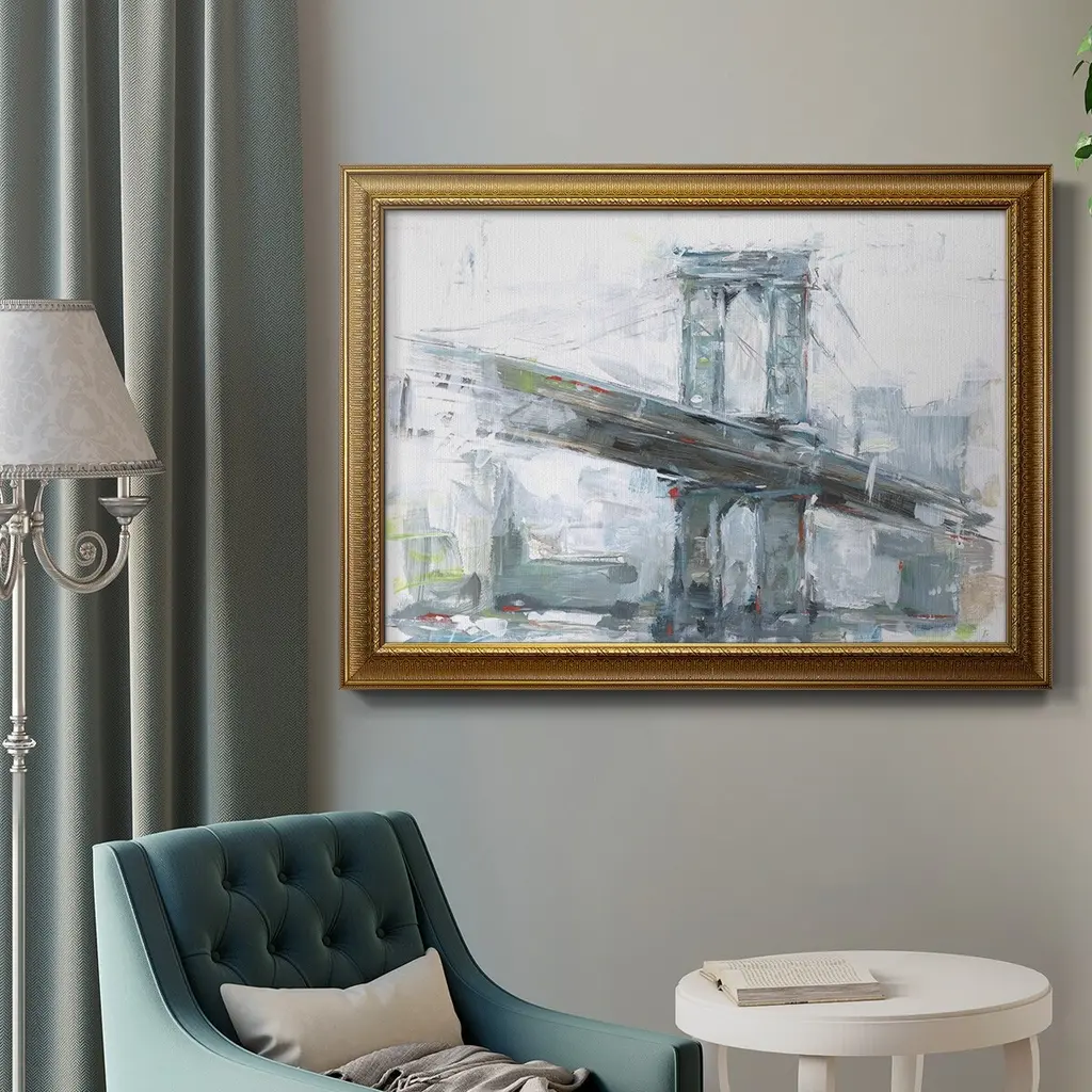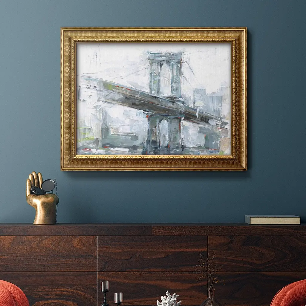 Brilliant City Study IV Premium Framed Canvas- Ready to Hang A Premium Framed Canvas created to last. Framed in distressed wood and available in an array of sizes and colors Featuring a beveled a solid wood stretcher bar, each piece comes ready to hand 3 SIZES AVAILABLE 16''X20'' - Overall Size 18'X27'' - Overall Size 24''x36'' - Overall Size Each piece is made to order. Each piece comes with hanging hardware. Made in the USA Ready to Hang Giclee Paper Print Acrylic Glass Beveled Matt Board