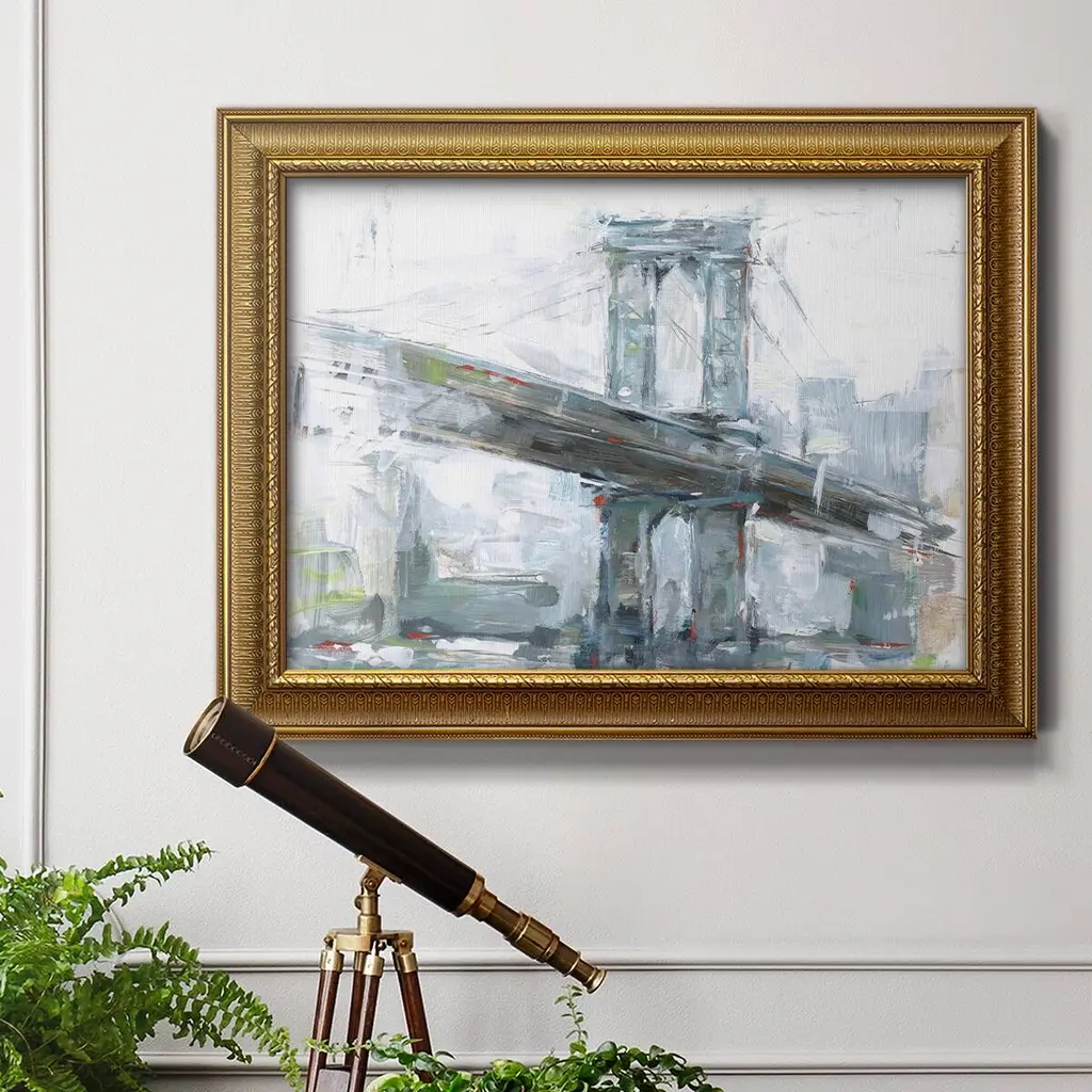 Brilliant City Study IV Premium Framed Canvas- Ready to Hang A Premium Framed Canvas created to last. Framed in distressed wood and available in an array of sizes and colors Featuring a beveled a solid wood stretcher bar, each piece comes ready to hand 3 SIZES AVAILABLE 16''X20'' - Overall Size 18'X27'' - Overall Size 24''x36'' - Overall Size Each piece is made to order. Each piece comes with hanging hardware. Made in the USA Ready to Hang Giclee Paper Print Acrylic Glass Beveled Matt Board