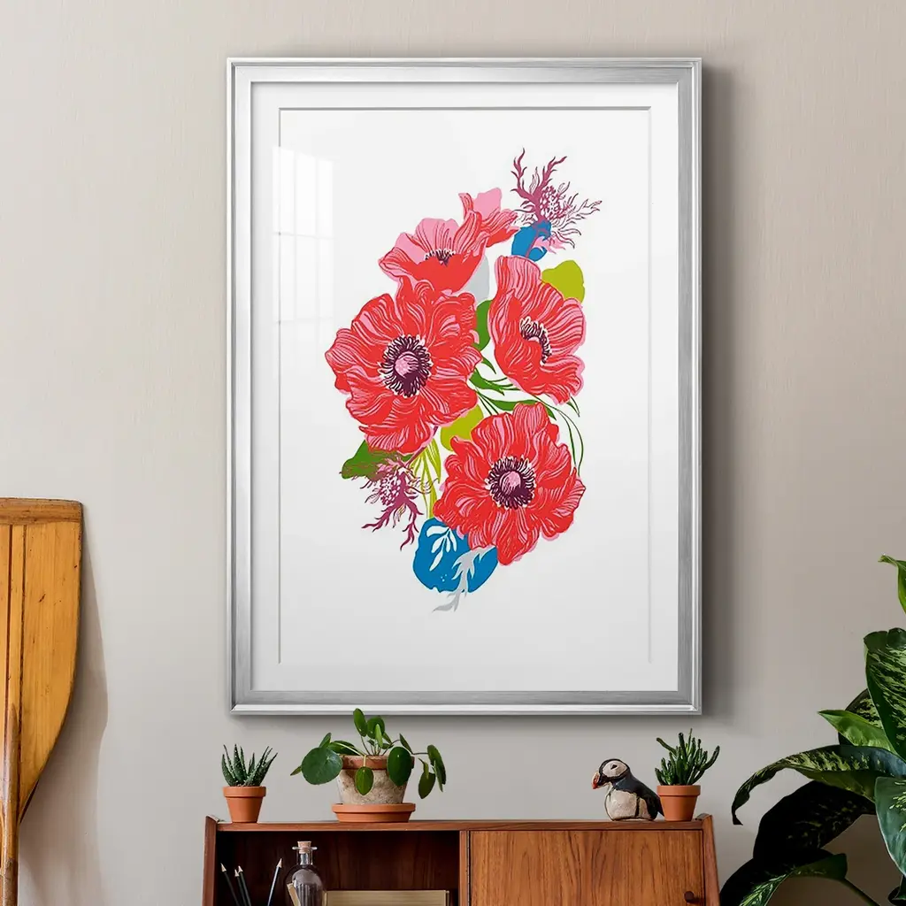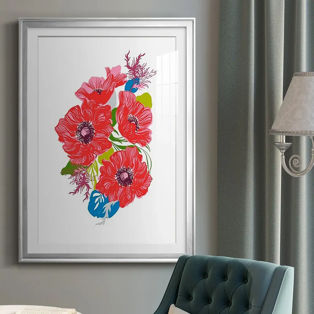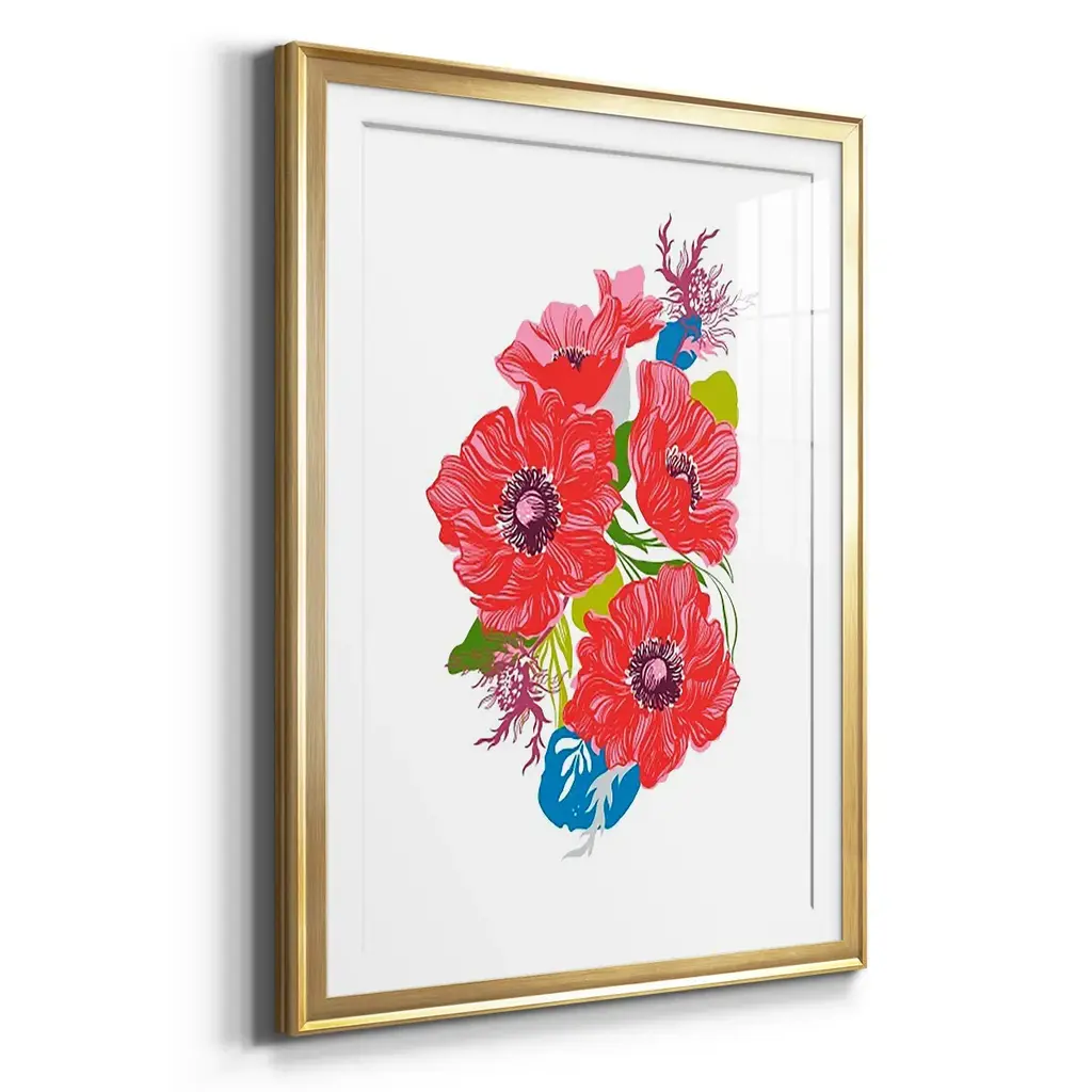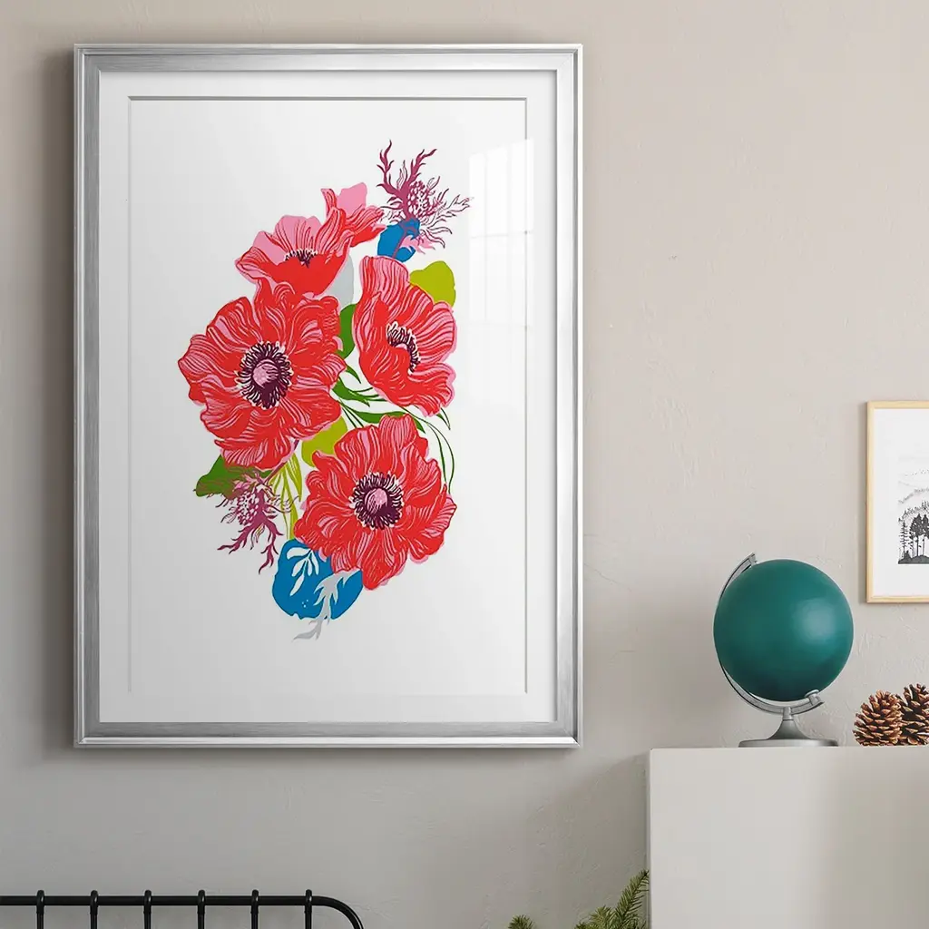 Brilliant Poppies I Premium Framed Print - Ready to Hang A Premium Framed Print created to last. Framed in distressed wood and available in an array of sizes and colors Featuring a beveled a solid wood stretcher bar, each piece comes ready to hand 4 SIZES AVAILABLE 30.5''X42.5'' - Overall Size 26.5'X36.5'' - Overall Size 22.5''x30.5'' - Overall Size 18.5''x24.5'' - Overall Size Each piece is made to order. Each piece comes with hanging hardware. Made in the USA Ready to Hang Giclee Paper Print Acrylic Glass Beveled Matt Board