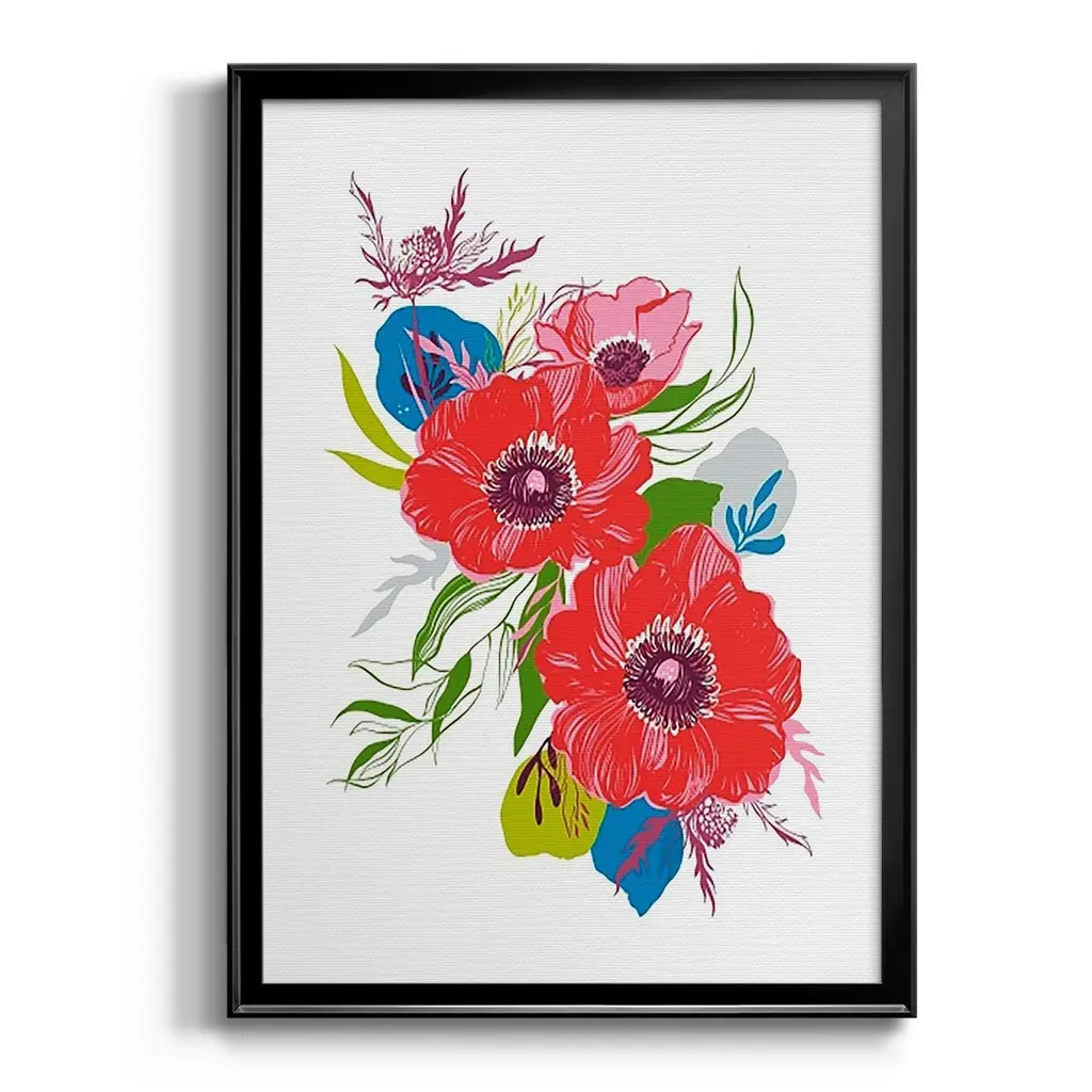 Brilliant Poppies II Premium Framed Print - Ready to Hang A Premium Framed Print created to last. Framed in distressed wood and available in an array of sizes and colors Featuring a beveled a solid wood stretcher bar, each piece comes ready to hand 4 SIZES AVAILABLE 30.5''X42.5'' - Overall Size 26.5'X36.5'' - Overall Size 22.5''x30.5'' - Overall Size 18.5''x24.5'' - Overall Size Each piece is made to order. Each piece comes with hanging hardware. Made in the USA Ready to Hang