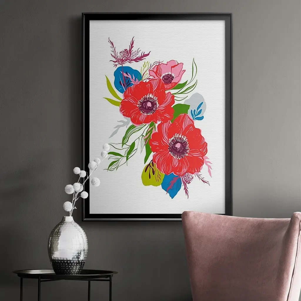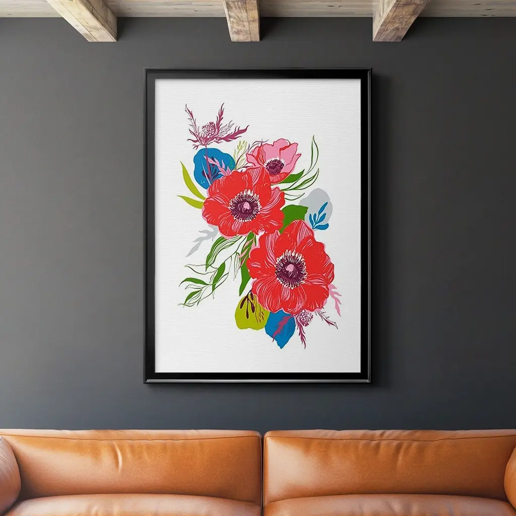 Brilliant Poppies II Premium Framed Print - Ready to Hang A Premium Framed Print created to last. Framed in distressed wood and available in an array of sizes and colors Featuring a beveled a solid wood stretcher bar, each piece comes ready to hand 4 SIZES AVAILABLE 30.5''X42.5'' - Overall Size 26.5'X36.5'' - Overall Size 22.5''x30.5'' - Overall Size 18.5''x24.5'' - Overall Size Each piece is made to order. Each piece comes with hanging hardware. Made in the USA Ready to Hang