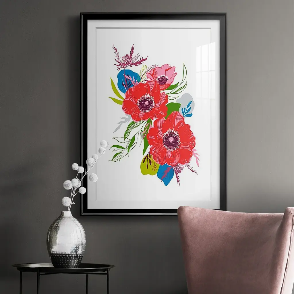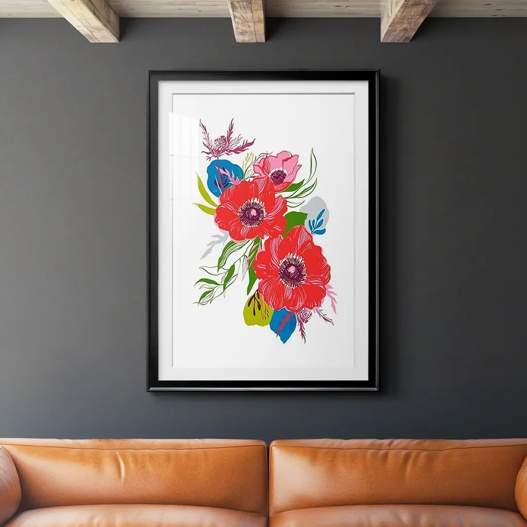 Brilliant Poppies II Premium Framed Print - Ready to Hang A Premium Framed Print created to last. Framed in distressed wood and available in an array of sizes and colors Featuring a beveled a solid wood stretcher bar, each piece comes ready to hand 4 SIZES AVAILABLE 30.5''X42.5'' - Overall Size 26.5'X36.5'' - Overall Size 22.5''x30.5'' - Overall Size 18.5''x24.5'' - Overall Size Each piece is made to order. Each piece comes with hanging hardware. Made in the USA Ready to Hang Giclee Paper Print Acrylic Glass Beveled Matt Board