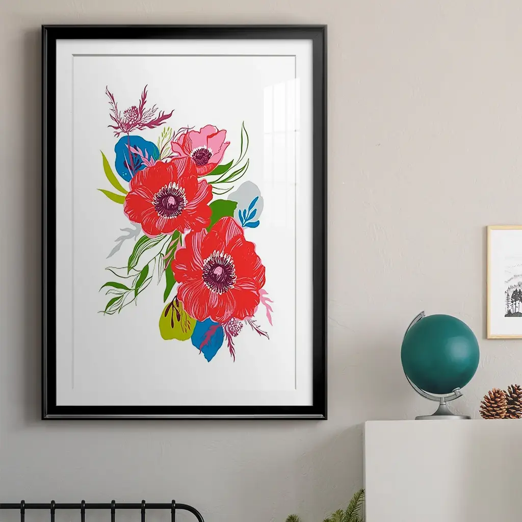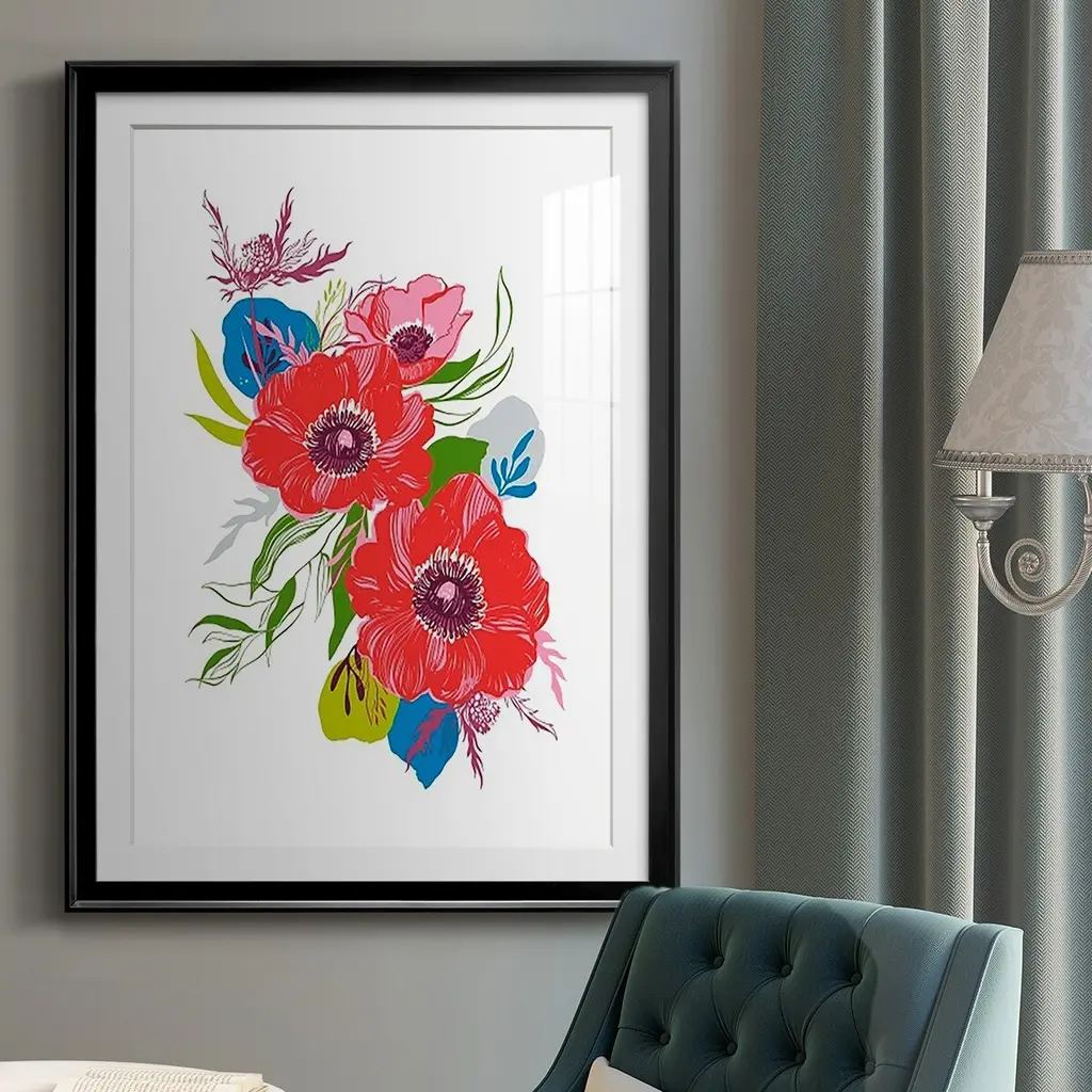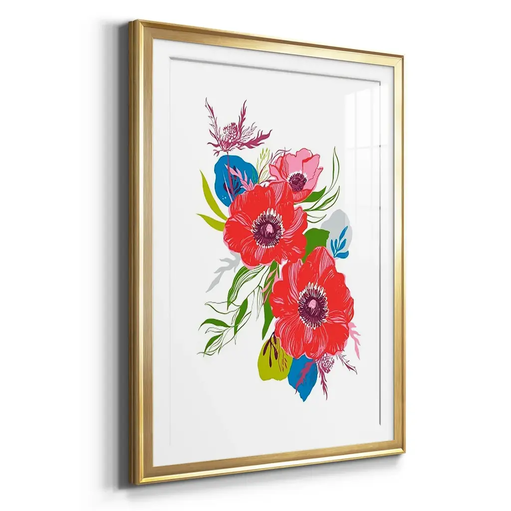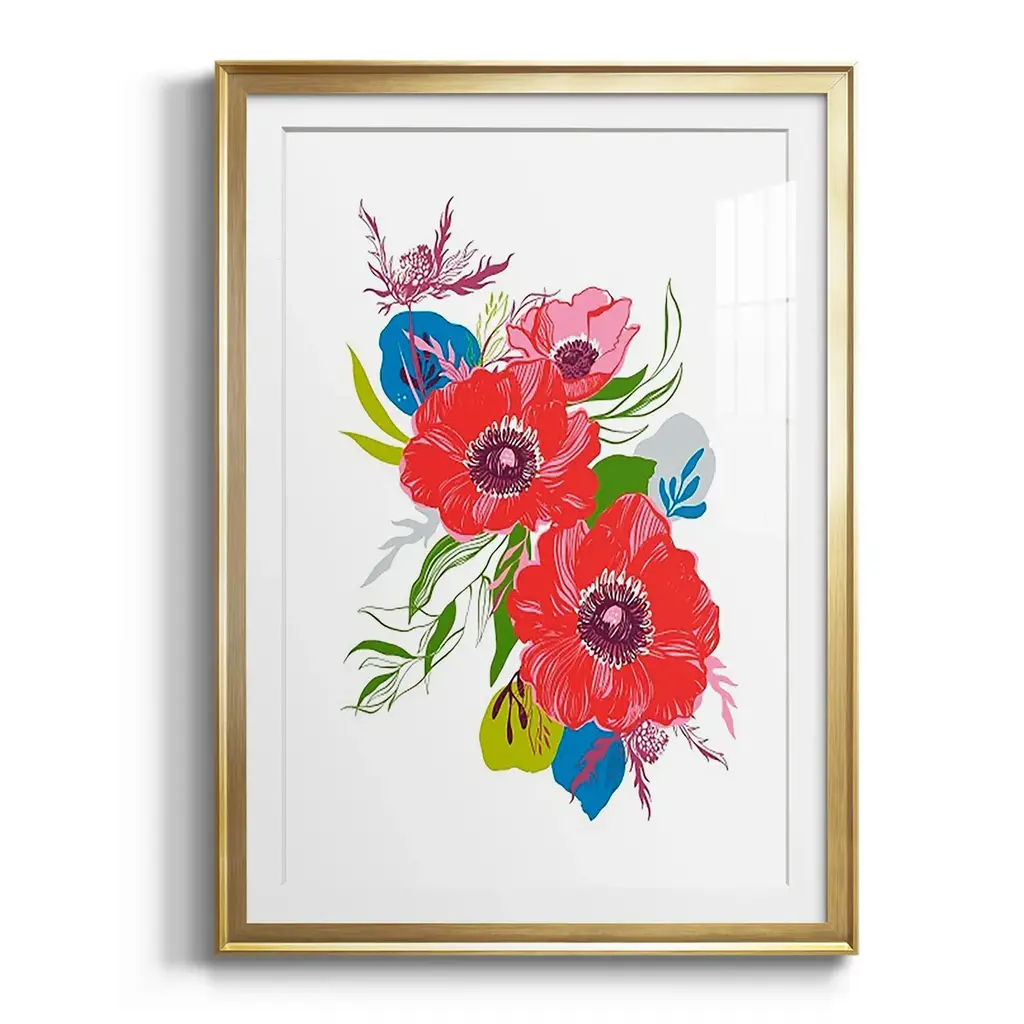Brilliant Poppies II Premium Framed Print - Ready to Hang A Premium Framed Print created to last. Framed in distressed wood and available in an array of sizes and colors Featuring a beveled a solid wood stretcher bar, each piece comes ready to hand 4 SIZES AVAILABLE 30.5''X42.5'' - Overall Size 26.5'X36.5'' - Overall Size 22.5''x30.5'' - Overall Size 18.5''x24.5'' - Overall Size Each piece is made to order. Each piece comes with hanging hardware. Made in the USA Ready to Hang Giclee Paper Print Acrylic Glass Beveled Matt Board