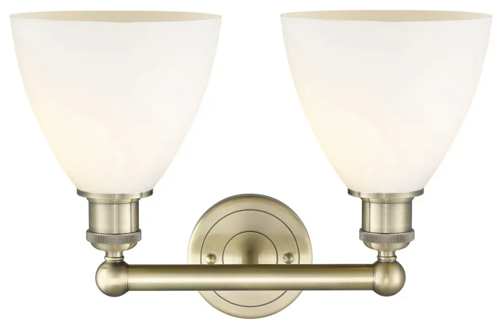 Bristol Glass 2-Light 17" Vanity Light, Antique Brass Finish, Matte White Shade