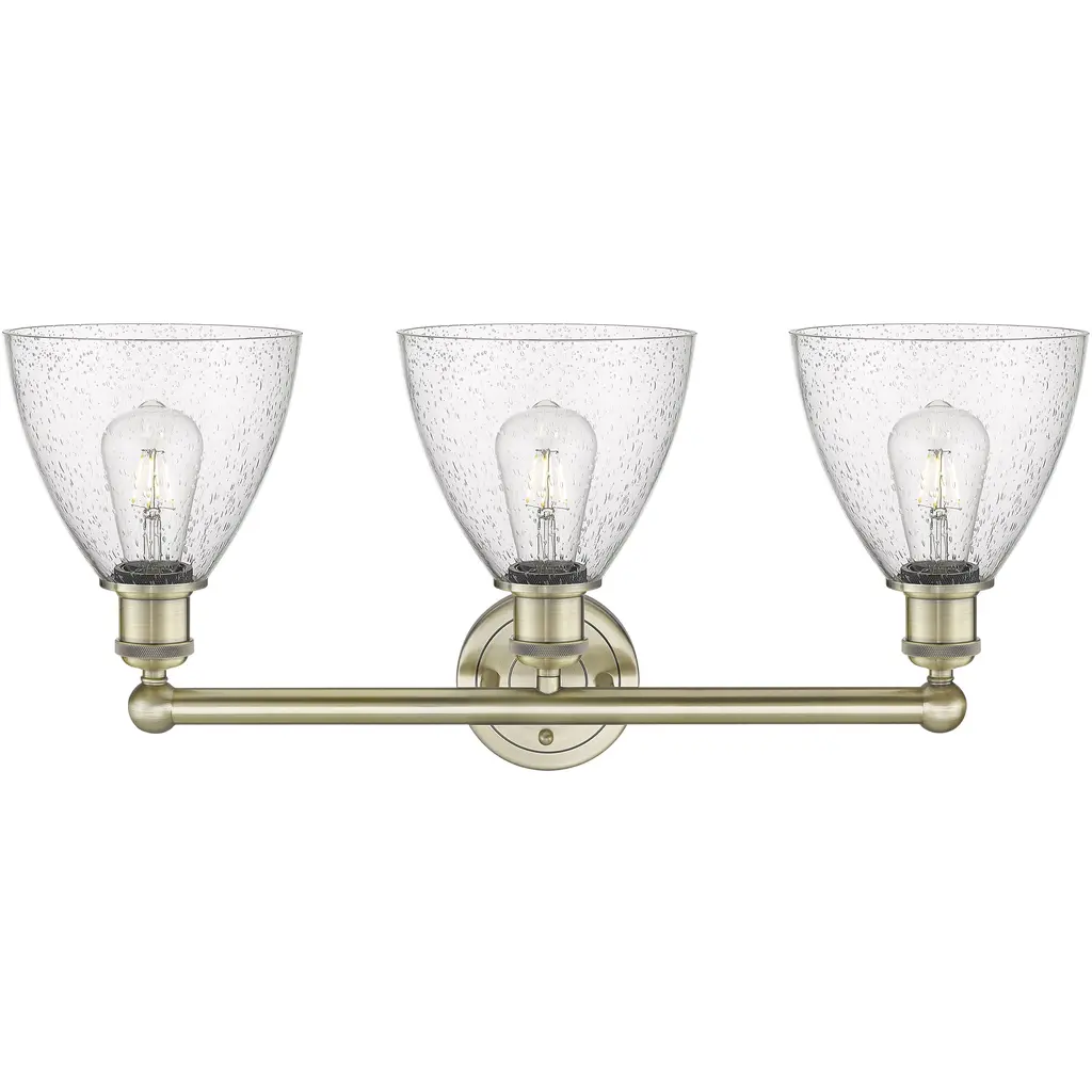 Bristol Glass - 3 Light 26" Bath Vanity Light - Antique Brass Finish - Seedy Shade