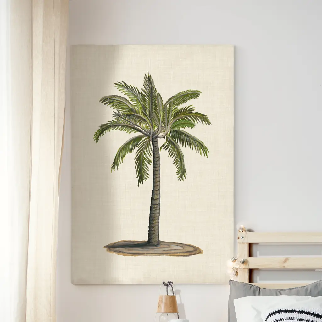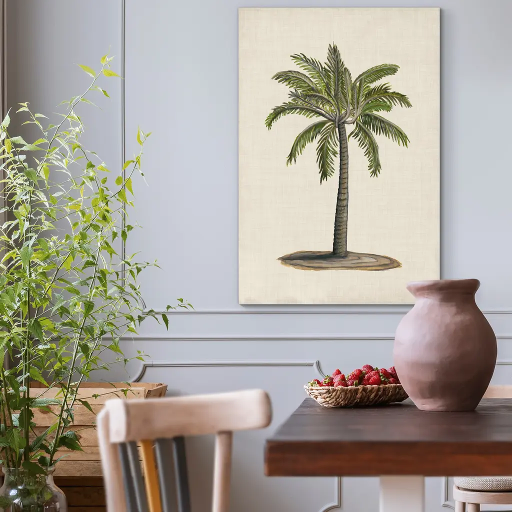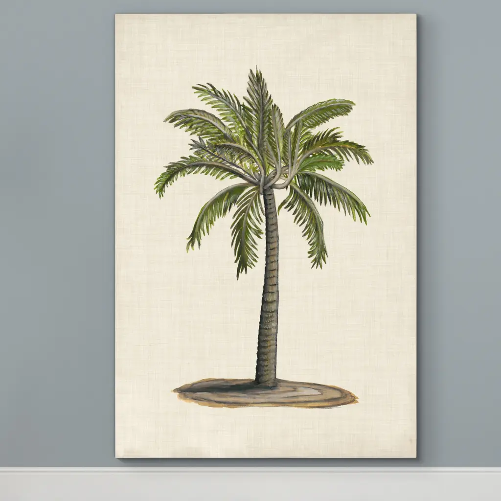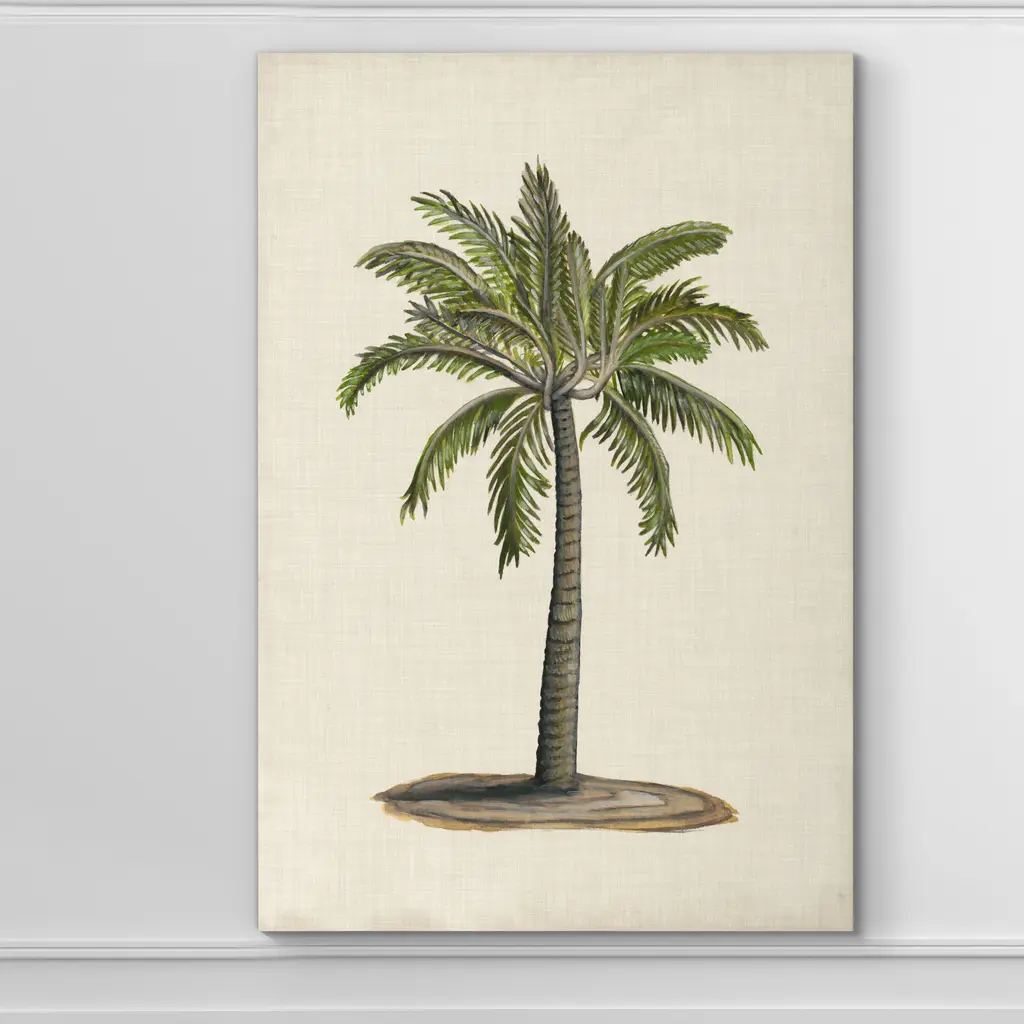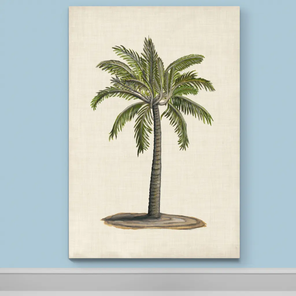 British Palms I -Premium Gallery Wrapped Canvas - Ready to Hang A premium hand stretched gallery wrapped canvas print created to last. Featuring a beveled a solid wood stretcher bar, each piece comes ready to hand 5 SIZES AVAILABLE 8''X12'' - Overall Size 16''x20'' - Overall Size 18''x27'' - Overall Size 24''x36'' - Overall Size 32''x48'' - Overall Size Each piece is made to order. Built to Last Each piece comes ready to hang Solid wood stretcher Fade and Water resistant Made domestically