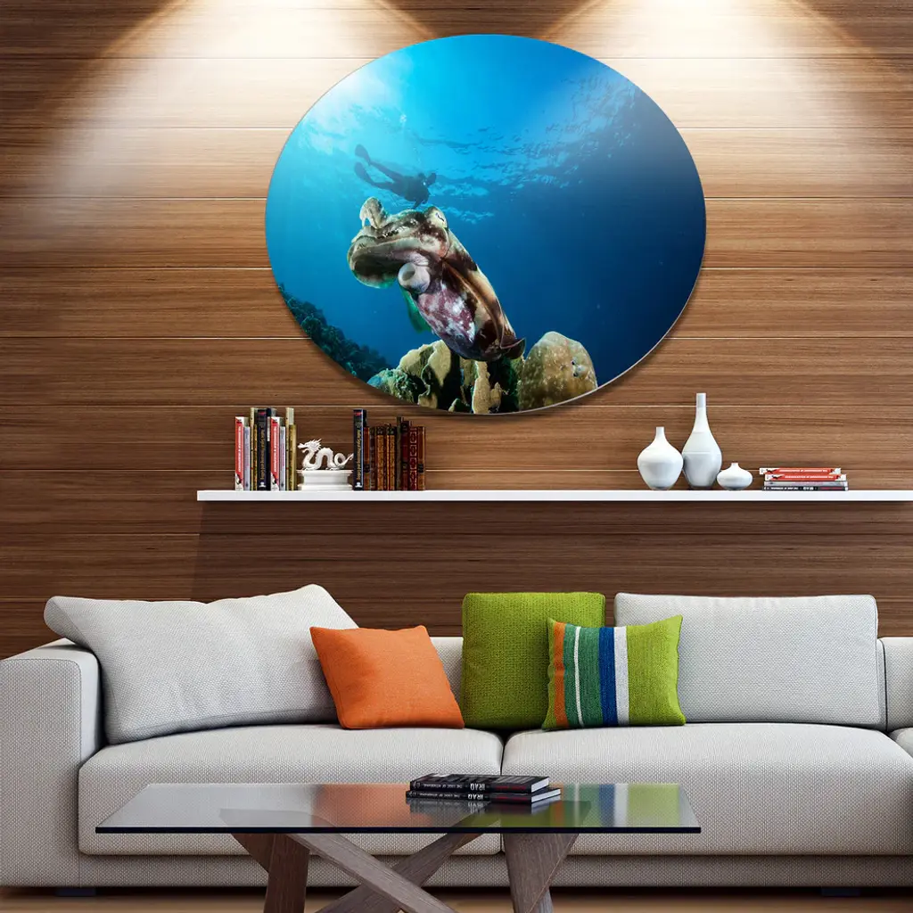 Broadclub Cuttlefish Underwater, Seashore Round Metal Wall Art, 36"