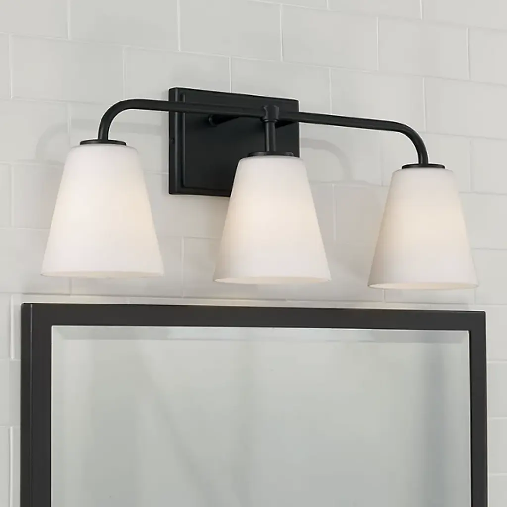 Embodying true minimalist form, the Brody Vanity Light by Capital Lighting brings a rustic modern, simplified style to your living space. A framework of fine metal secures a collection of white glass shades which radiate bright light from incandescent bulbs. The eye is drawn to the shades’ contoured, bin-like forms.