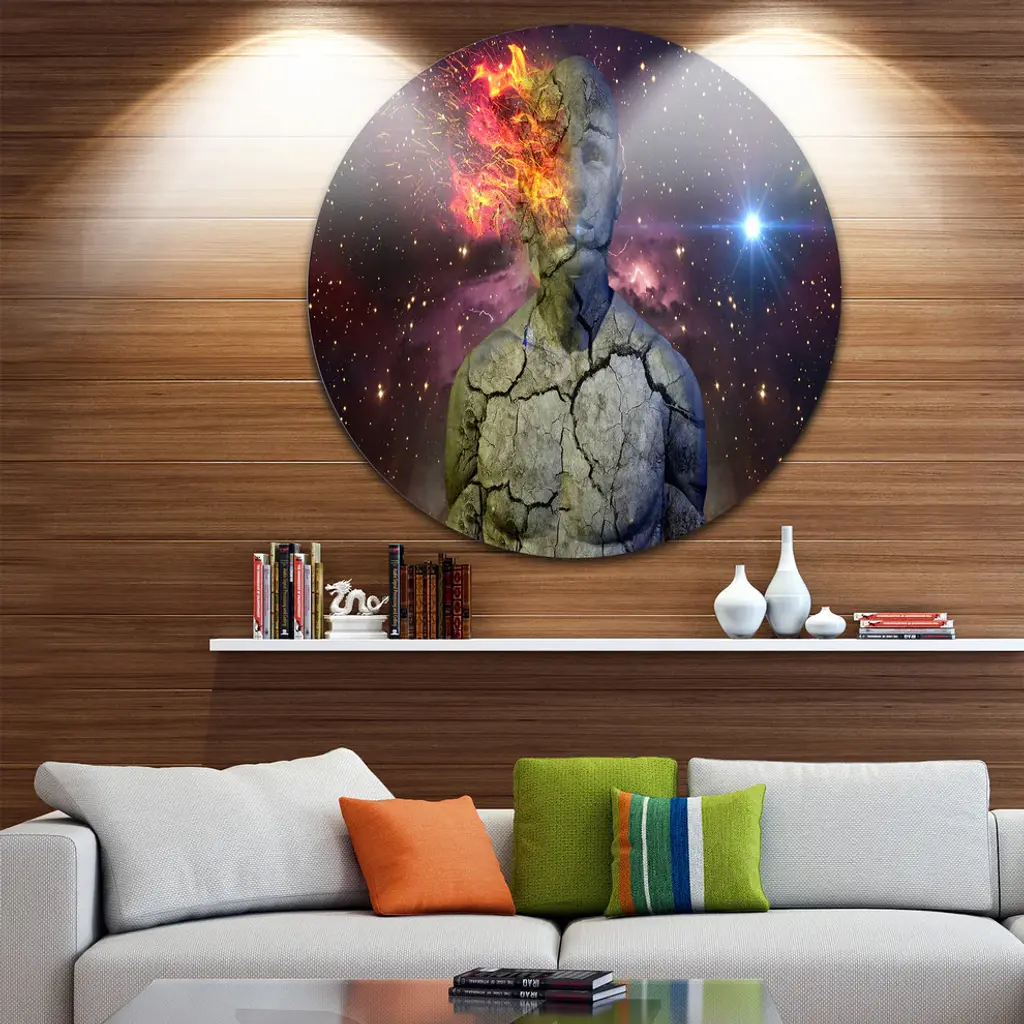 Broken Human Body With Fire, Abstract Art Round Wall Art, 23"