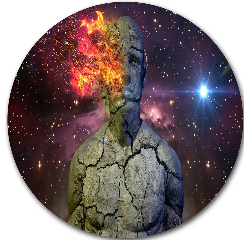 Bring contemporary abstraction to your home with this large 36W x 28H Metal Wall Art. This Broken Human Body with Fire Metal Artwork makes it the focal point of any room or office. - White gloss coating ensures colors are extra vibrant with light reflection.- Aluminum grade sheet metal with 1-inch mounting frame on the back giving the illusion that the artwork is floating on the wall.- Mounting brackets are included along with instructions.- High quality digital images are created directly into a glossy aluminum panel producing a stunning and captivating print into the glossy finish of the metal.- Water, fire and scratch resistant HD aluminum panels.- Looks better than any photo paper and guaranteed to last at least 20 years- Easy to clean with a microfiber cloth. Colors are far superior to regular canvas art. - Easy to hang