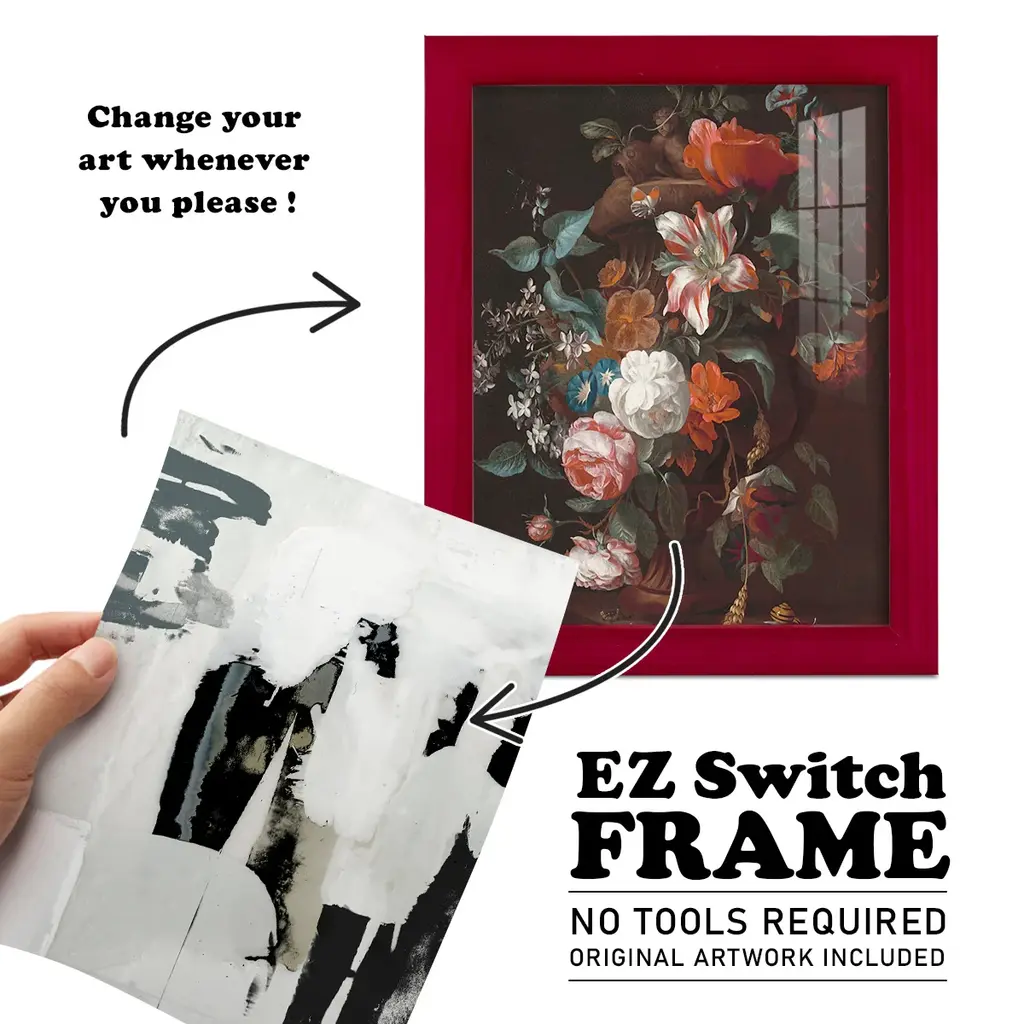 Broken Window I -EZ SWITCH Framed Print w/glass-Cherry Red A delightful, framed print. Featuring a solid wood frame with real wood glass. This premium print is giclee quality. In addition, every frame features a removable back and table top stand. This allows you to change your art in the future or to just stand the art on a table for a new look. We are sure you'll enjoy our new series of EZ SWITCH Framed Art. Solid Wood Frame Real Glass Removable / Replaceable Art Built in Tabletop Stand Sizes range from 4x6 up to 12x15 - buy just one or pair them up as sets as you see fit.