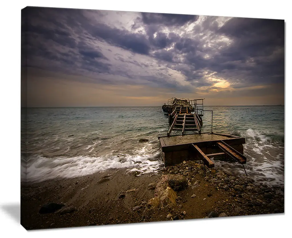 The Broken Wooden Pier for Boats canvas art print is sure to make an impression on anyone who sees it. This artwork is gallery wrapped around a 1-inch solid wood frame and arrives carefully packaged and entirely ready to hang on the wall. Design Art only uses the highest resolution and pigments to ensure a crisp colorful print that is never faded or pixelated. This artwork is sure to be a conversation starter in any home or office.