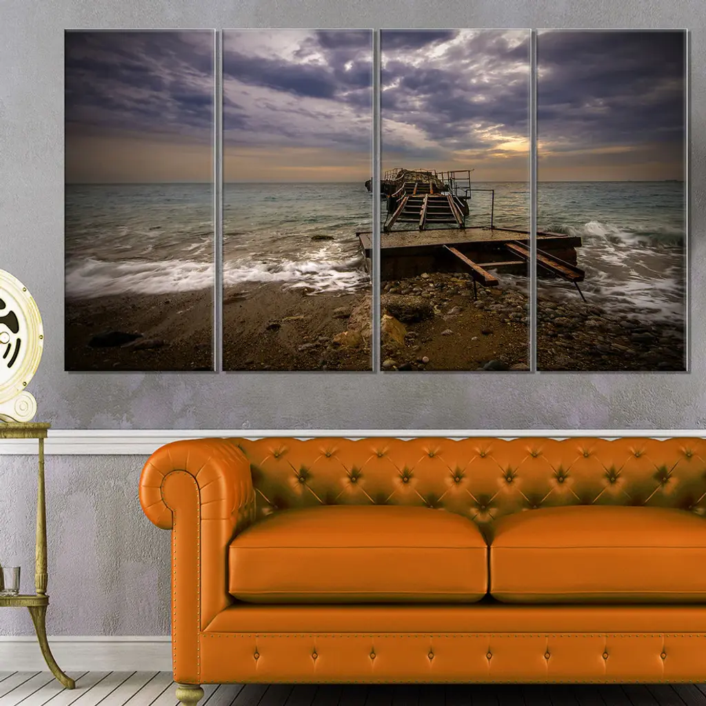 The Broken Wooden Pier for Boats canvas art print is sure to make an impression on anyone who sees it. This artwork is gallery wrapped around a 1-inch solid wood frame and arrives carefully packaged and entirely ready to hang on the wall. Design Art only uses the highest resolution and pigments to ensure a crisp colorful print that is never faded or pixelated. This artwork is sure to be a conversation starter in any home or office.