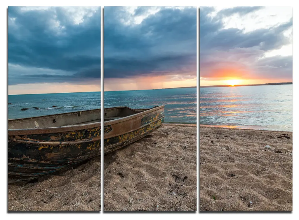 "Broken Wooden Pier For Boats" Sea Bridge Canvas Wall Artwork, 4 Panels, 48"x28"