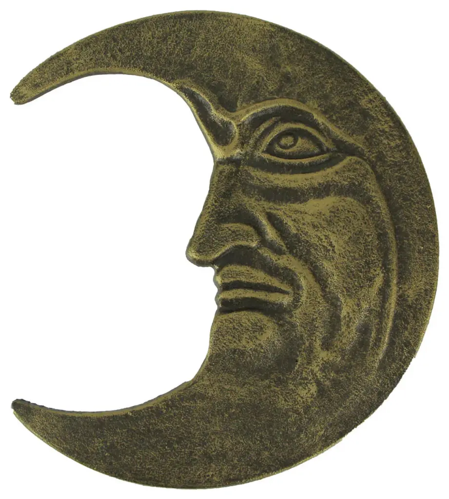Overall Size - This charming moon face wall hanging measures 11.75 inches in height, 10.5 inches in length, and 0.75 inches in width.Quality Construction - Crafted from robust and enduring cast iron, this piece boasts a built-in keyhole mounting hanger on the back, ensuring secure and easy placement on your chosen surface.Antique Bronze Finish - Its antique metallic bronze finish, adorned with a wonderfully weathered patina, adds a touch of vintage character, giving it a timeless and elegant appearance.Versatile Decor - Whether hung on a patio wall, garden fence, near the pool, or inside your home, this wall hanging is ready to elevate your space. Leave it as it is for a classic look or unleash your creativity and decorate it according to your unique style.Celestial Charm - Brimming with whimsical allure, this moon face wall hanging brings celestial charm to any indoor or outdoor home decor setting, adding a touch of magic and mystery to your surroundings.Indulge in the ethereal charm of the night sky with our mesmerizing cast iron moon wall hanging. This captivating piece, adorned in an antique bronze finish reminiscent of a golden glow, adds an aura of celestial mystery to your surroundings. Crafted from durable cast iron, its sturdy construction ensures longevity, allowing you to embellish your walls both indoors and outdoors. The intricately designed crescent moon face, measuring 11.75 inches in height, 10.5 inches in length, and 0.75 inches in width, captures the essence of lunar allure. This celestial masterpiece is more than a mere decoration; it''s a portal to a tranquil realm. Imagine the calming ambiance it lends to your patio or garden, where its presence transforms your outdoor space into an enchanting sanctuary under the moonlit night. Indoors, it becomes a focal point, radiating a soothing energy throughout your living room, bedroom, or kitchen. The built-in keyhole mounting hanger ensures effortless installation, allowing you to hang it with ease the moment it arrives, inviting the moon''s whimsical charm into your home. Let its beguiling allure inspire your dreams, casting a serene atmosphere and infusing your space with the magic of the cosmos. Immerse yourself in the celestial wonders of this elegant crescent moon wall hanging and let your imagination wander among the stars.