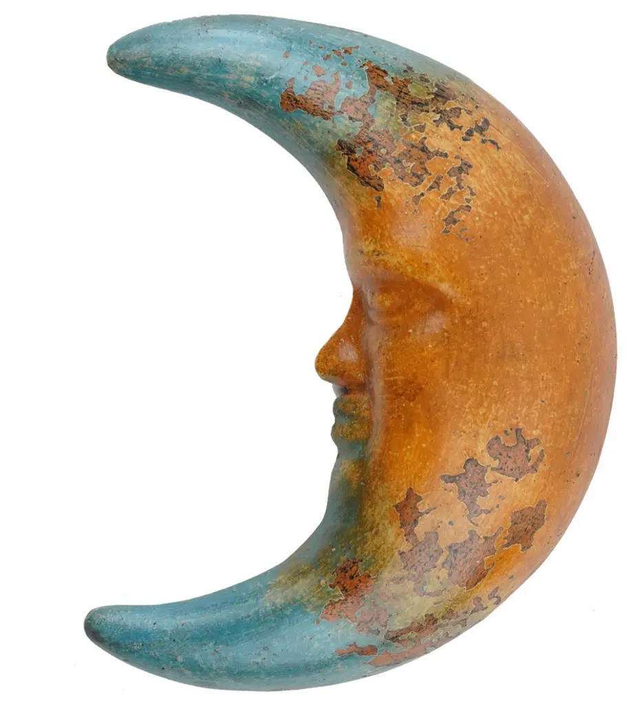 Bronze Finish Cast Iron Crescent Man In The Moon Face Indoor Outdoor Wall Decor