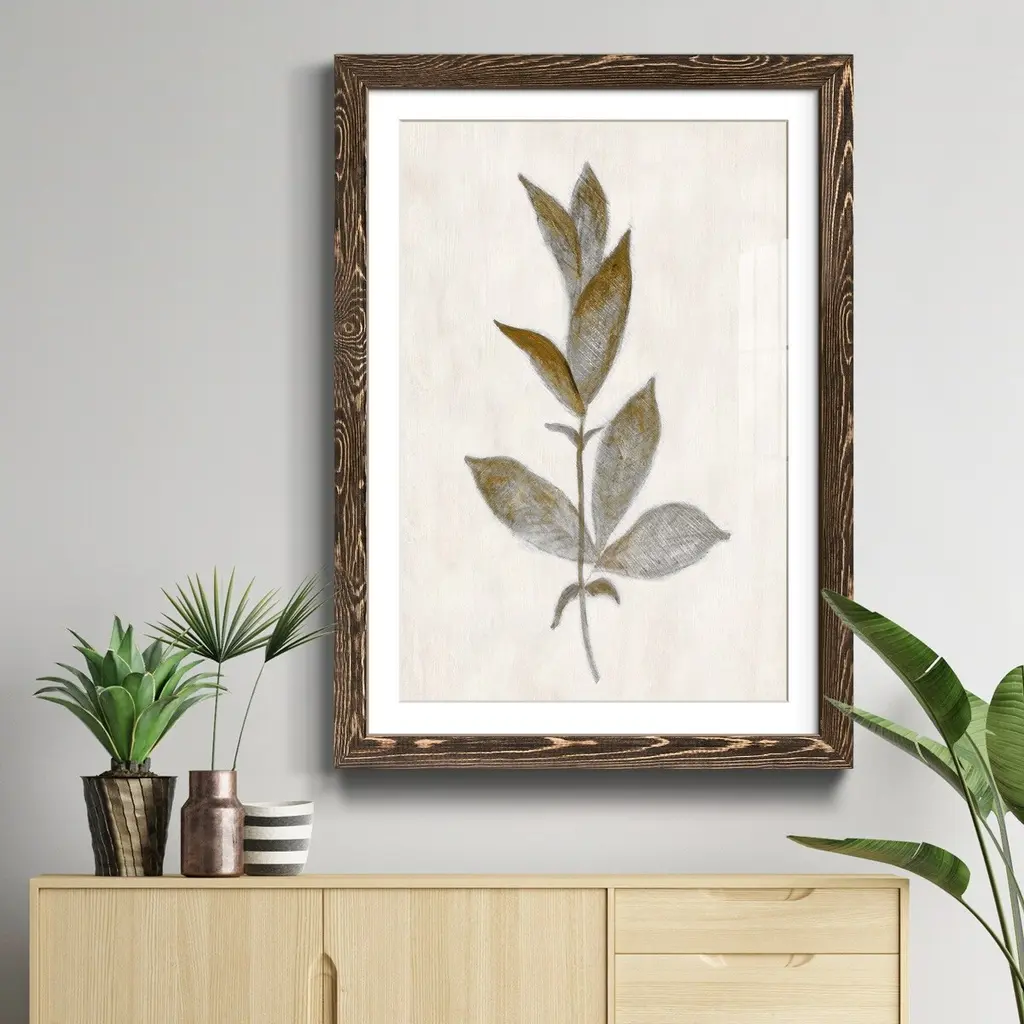 Bronze Leaf II-Premium Framed Print - Ready to Hang Framed in distressed wood and available in an array of sizes and colors Each piece is joined and assembled by hand and comes ready to hang 2 INCH BEVELED MATTE BOARD PLEXIGLASS COVERING READY TO HANG MADE IN THE USA SOLID WOOD FRAME MADE IN USA FADE RESISTANT GICLEE PRINTING on Canvas or Paper