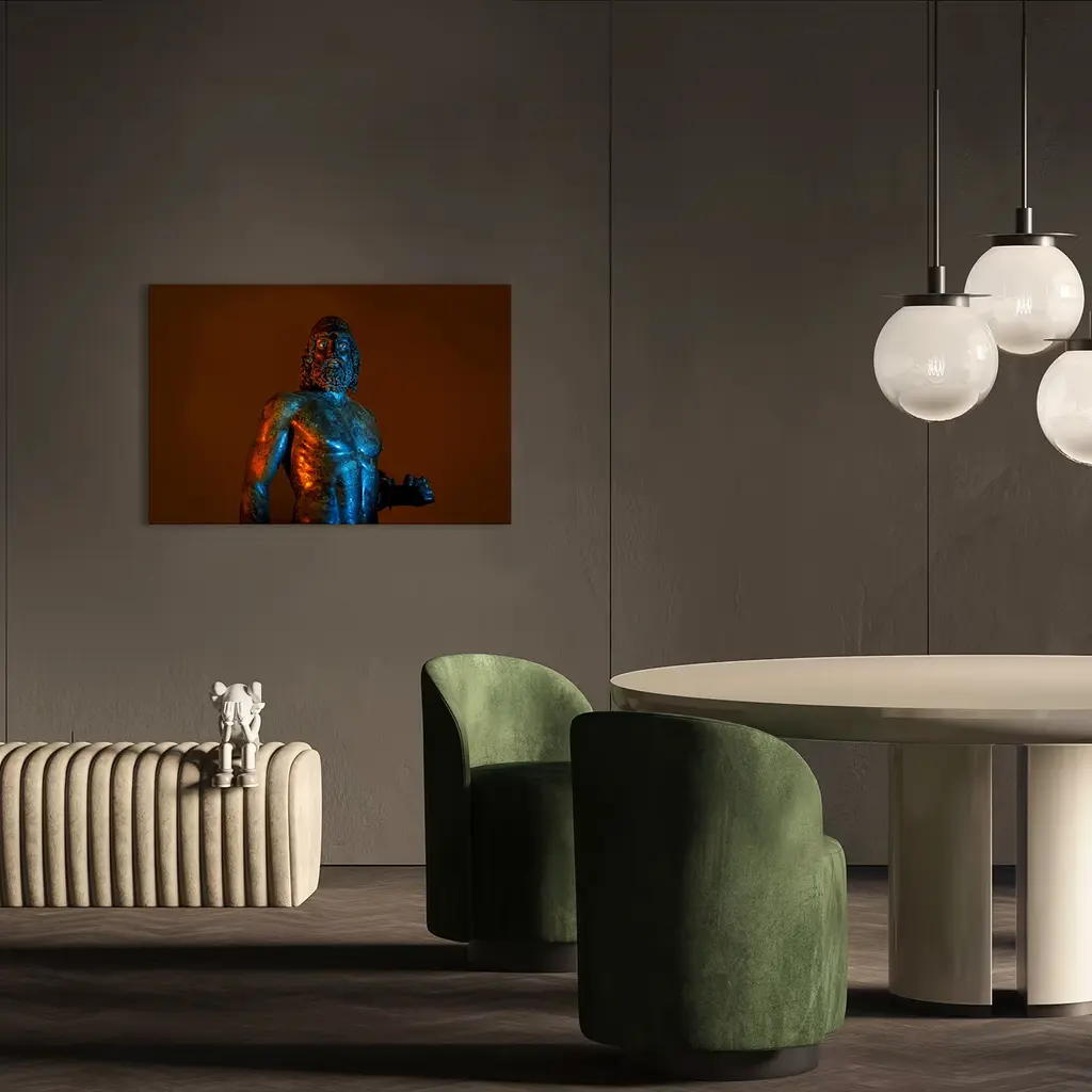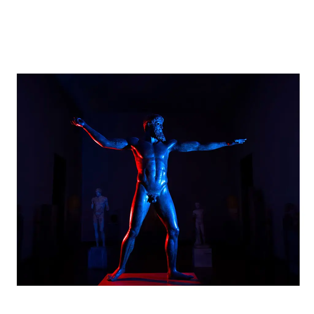 Treasures from the sea is a photographic project portraying Ancient Greek bronzes found in the Mediterranean sea in the last century. With the use of the best technology available in contemporary photography, the artist is presenting a new and personal perspective of these incredible treasures of the sea. The lighting set-up is designed to enhance the three-dimensional value of this group of statues and to deliver a theatrical vision of them. This is a Limited Edition of 10. Frame not included.