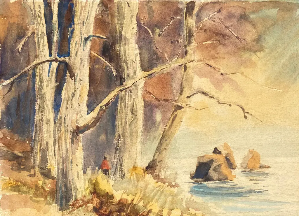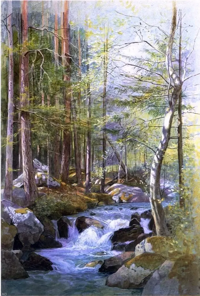 Brook And Rocks Oil Painting, Landscape Painting Round Wall Art, 11"