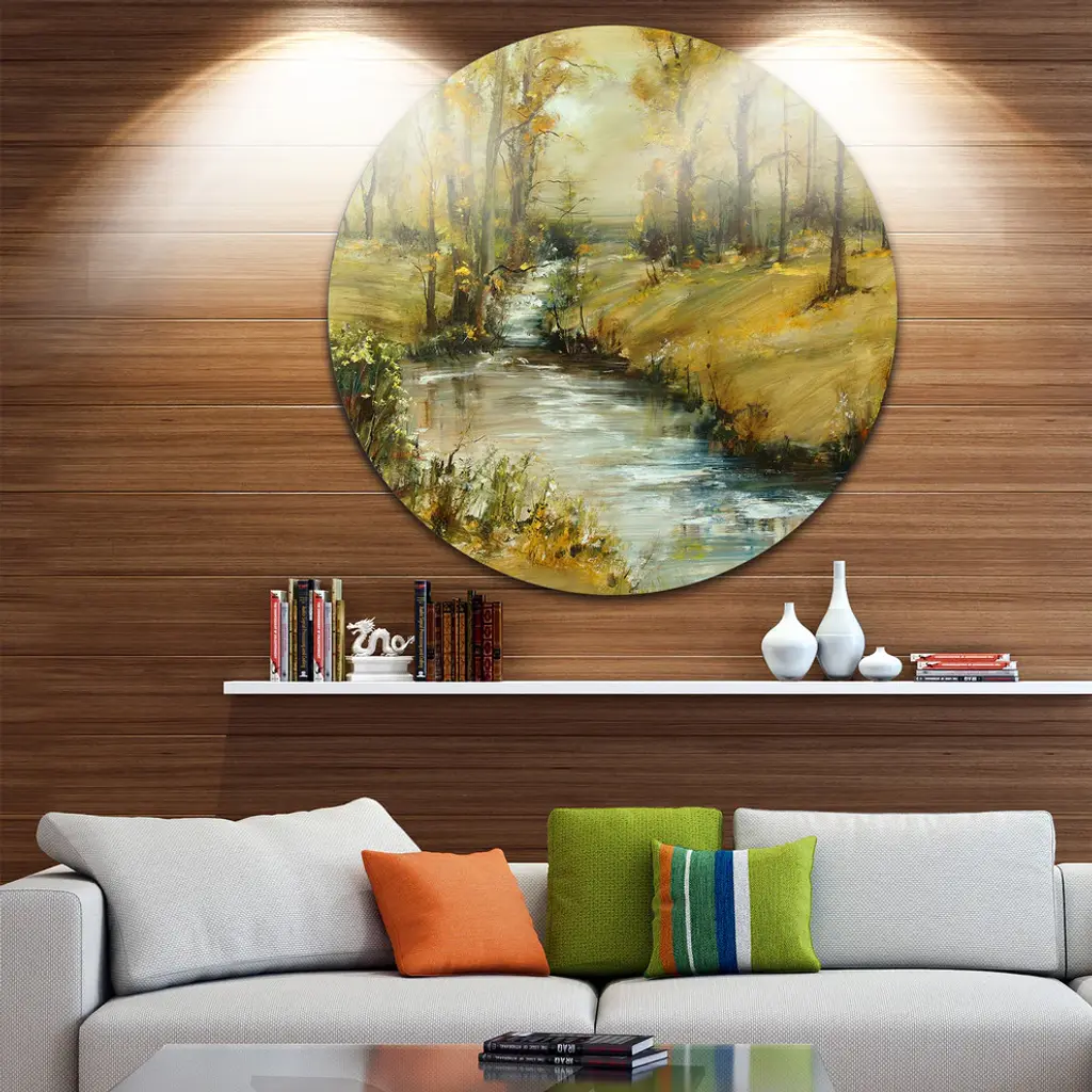 Brook In Autumn Oil, Landscape Round Metal Wall Art, 11"