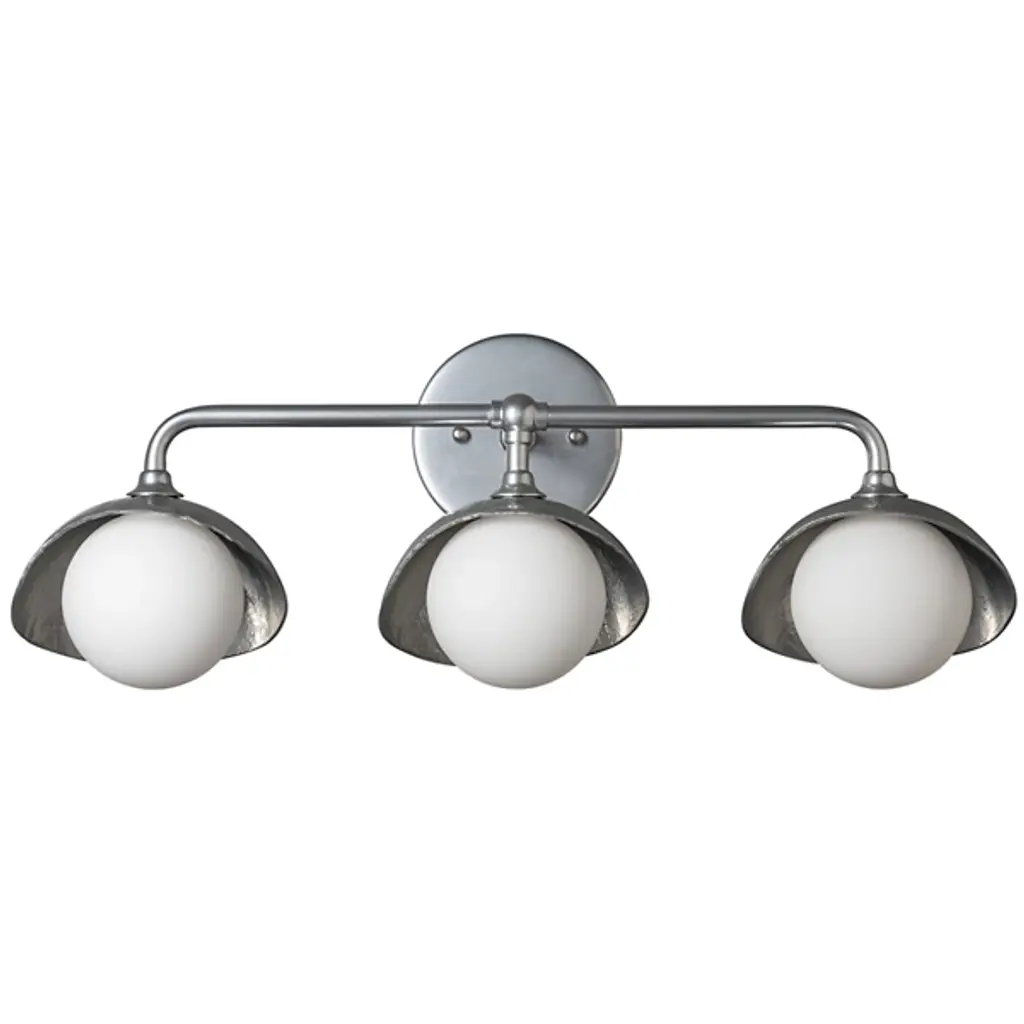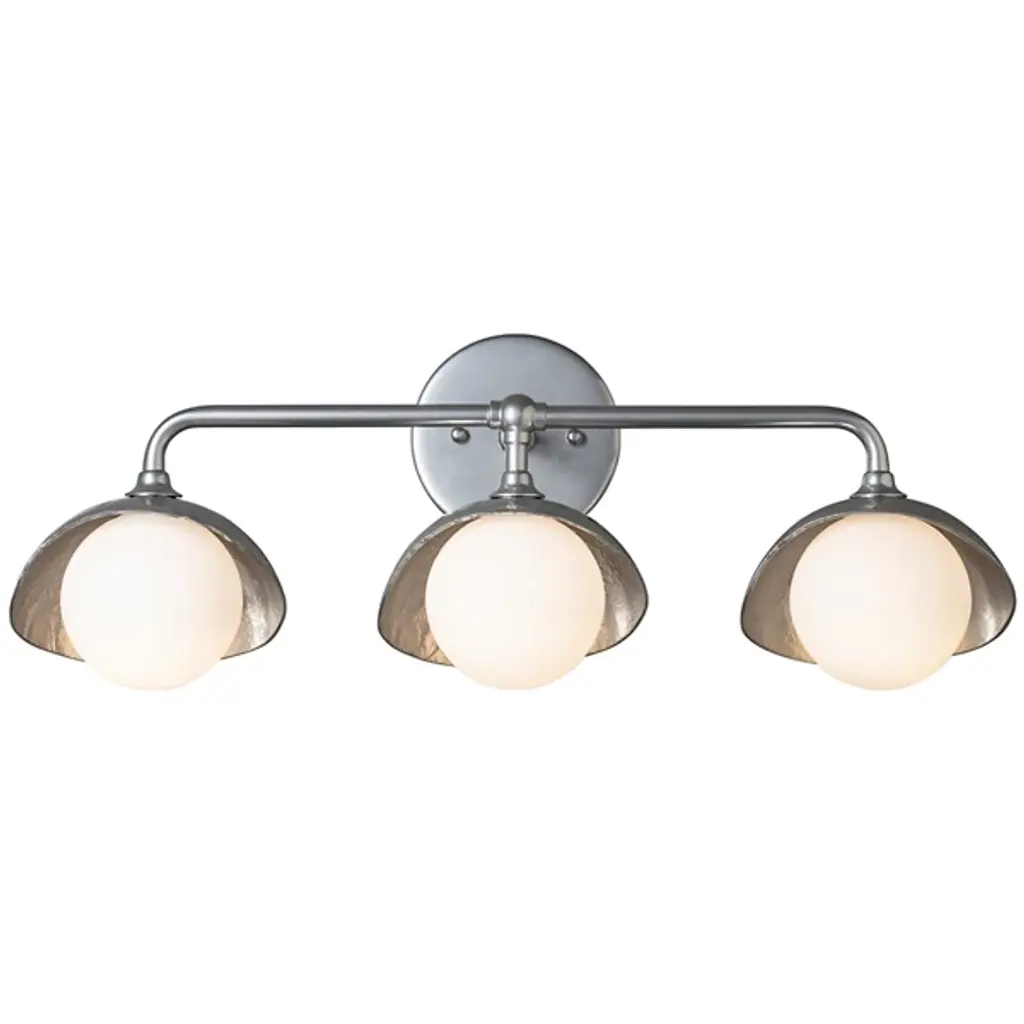 Take a sophisticated approach to design with the Brooklyn 3-Light Single Shade Vanity Light by Hubbardton Forge. Our artisans took curvature to the next level, making a single lid-like shade the center point of this vanity light fixture. Three unique, forged-steel shades sit at the end of a slim curved rod attached to a circular base, adding depth and illusion to the sizeable orb globe that sits in the middle. Install this beautiful vanity fixture in your bathroom for optimal illumination.