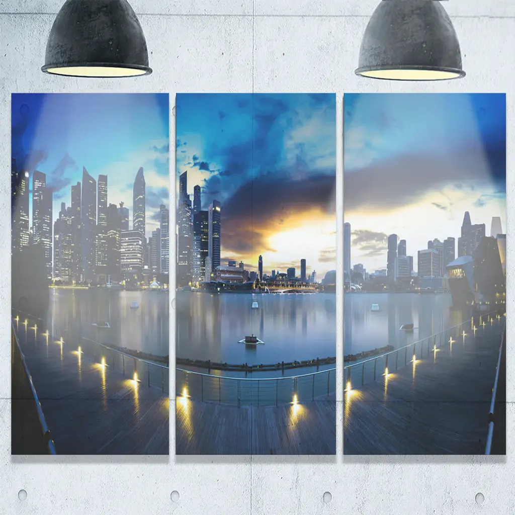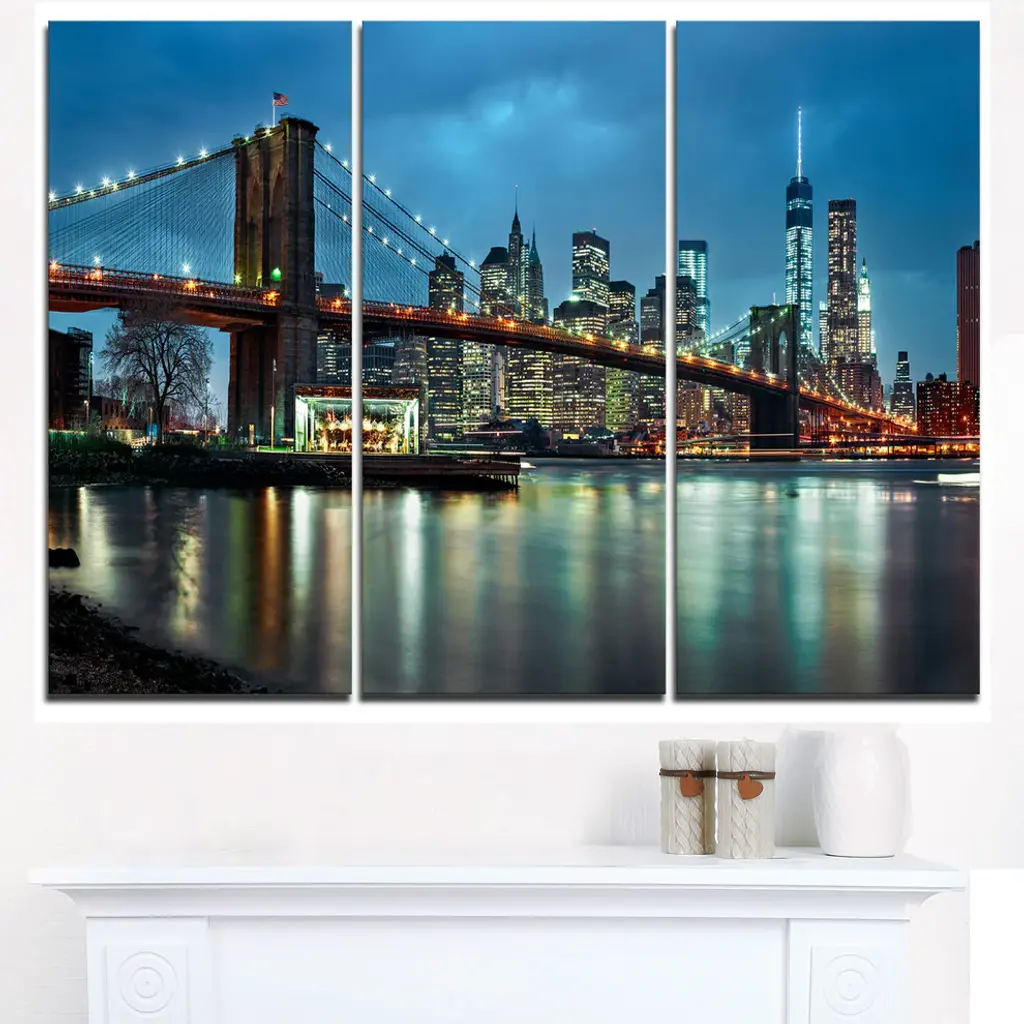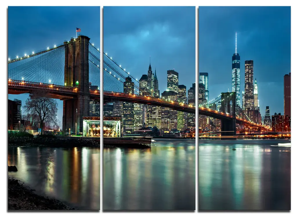 "Brooklyn Bridge And Skyscrapers" Metal Wall Art, 3 Panels, 36"x28"