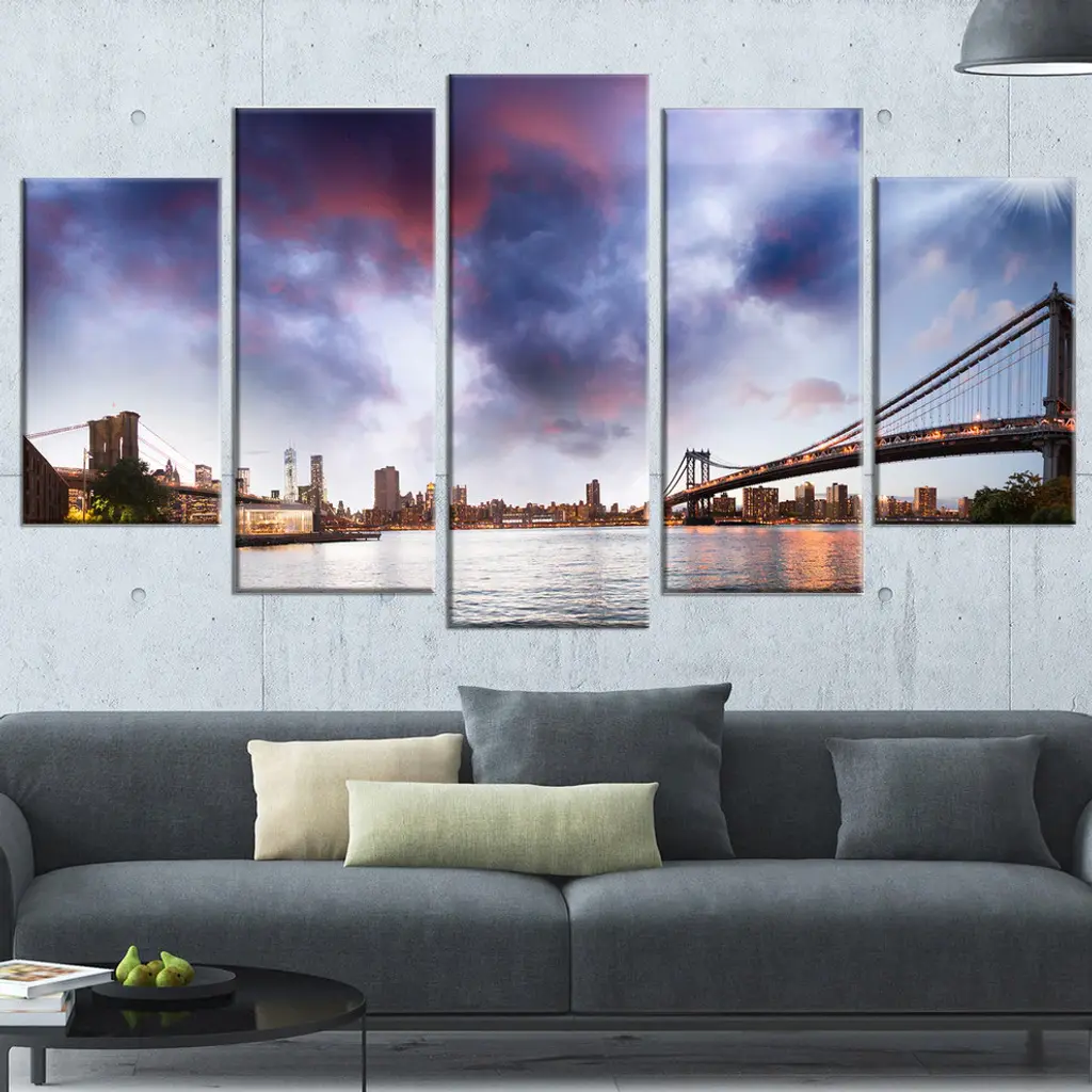 "Brooklyn Bridge Over East River" Canvas Print60"x32", 5-Panels