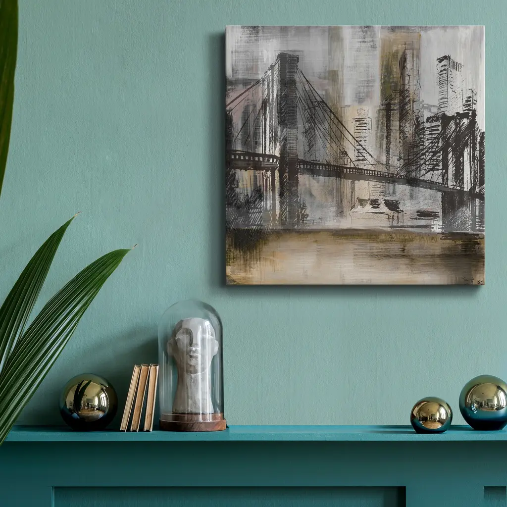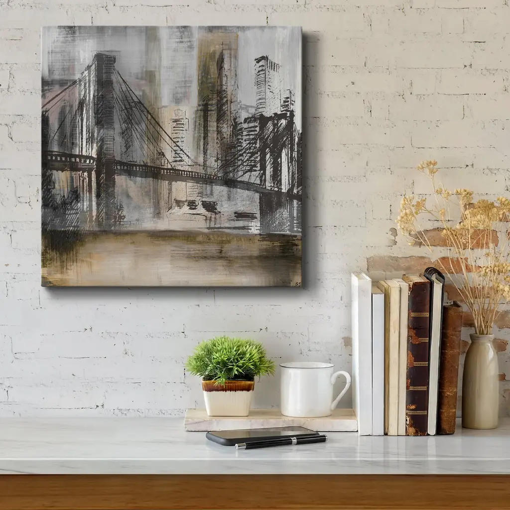 Brooklyn Bridge Twilight-Premium Gallery Wrapped Canvas - Ready to Hang A premium hand stretched gallery wrapped canvas print created to last. Featuring a beveled a solid wood stretcher bar, each piece comes ready to hand 5 SIZES AVAILABLE 10''X10'' - Overall Size 16''x16'' - Overall Size 24''x24'' - Overall Size 32''x32'' - Overall Size 40''x40'' - Overall Size Each piece is made to order. Built to Last Each piece comes ready to hang Solid wood stretcher Fade and Water resistant Made domestically
