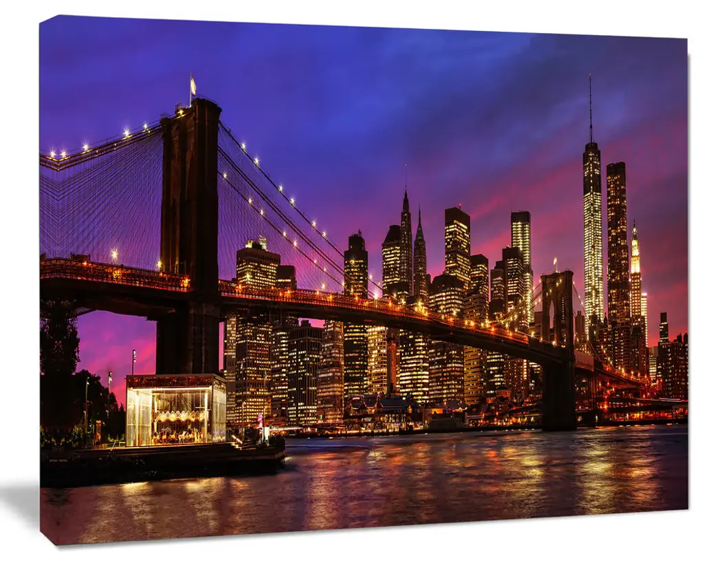 Brooklyn Bridge With Lights And Reflections, Disc Metal Artwork, 36"