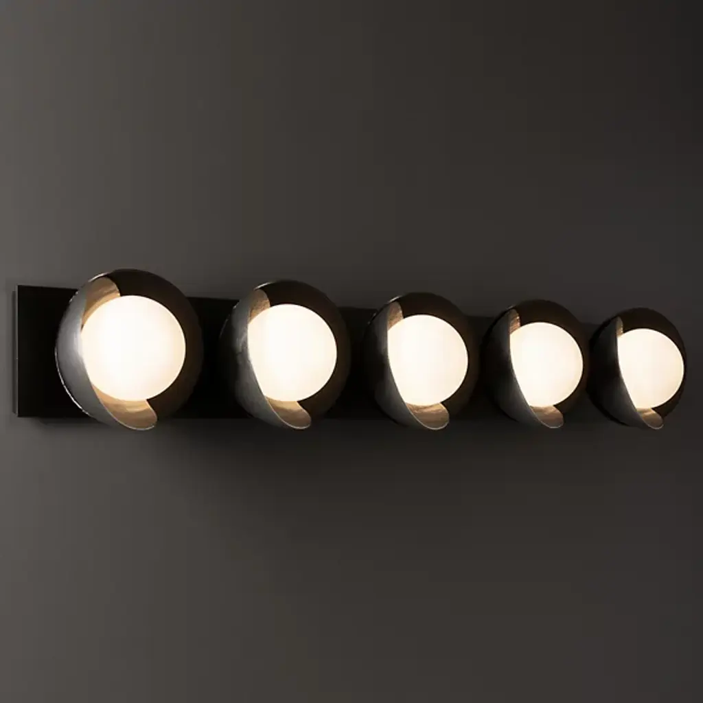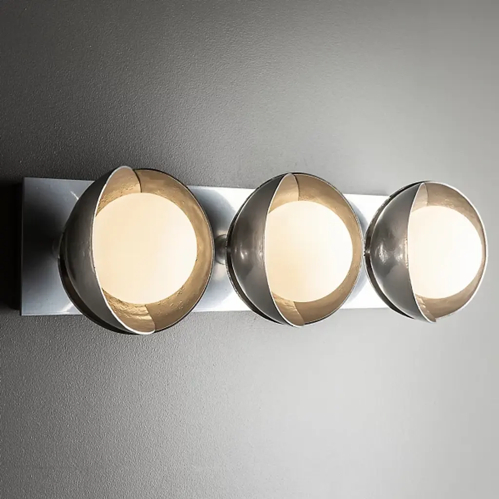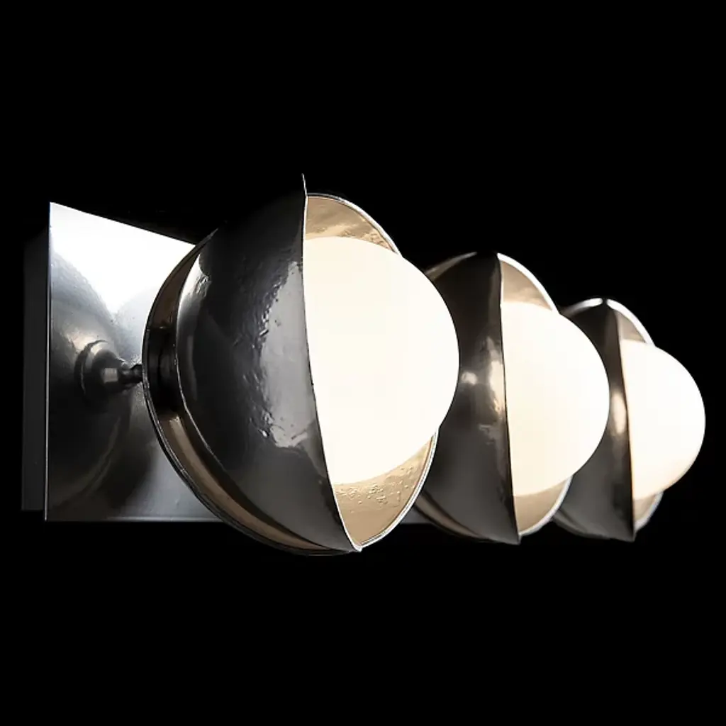 The Brooklyn Straight Double Shade Vanity Light by Hubbardton Forge plays on the idea of movement and flow. Our artisans took curvature to the next level, making a single lid-like shade the focal point of this cluster semi-flushmount light. A unique, forged-steel shade sits at the end of each rod, extending up to a slim circular base and extending down to a globe. The shade on each globe can be adjusted to direct the light as needed. Mount this semi-flushmount fixture in your bedroom, hallway, or foyer.