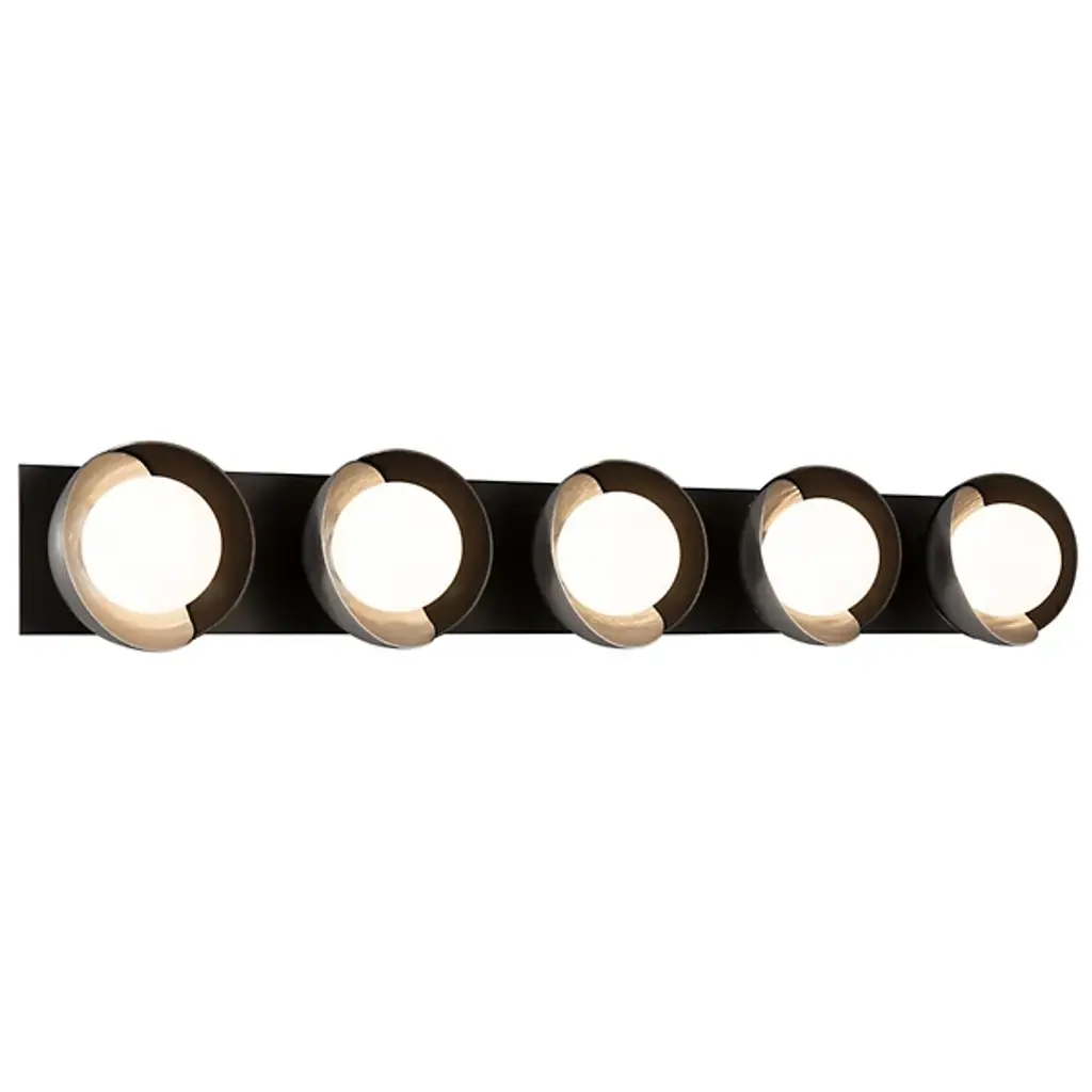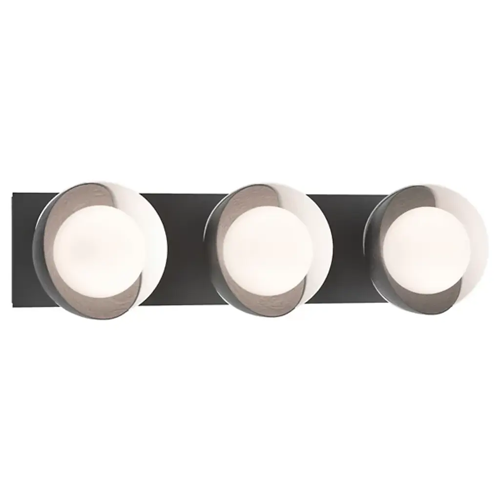 The Brooklyn Straight Double Shade Vanity Light by Hubbardton Forge plays on the idea of movement and flow. Our artisans took curvature to the next level, making a single lid-like shade the focal point of this cluster semi-flushmount light. A unique, forged-steel shade sits at the end of each rod, extending up to a slim circular base and extending down to a globe. The shade on each globe can be adjusted to direct the light as needed. Mount this semi-flushmount fixture in your bedroom, hallway, or foyer.