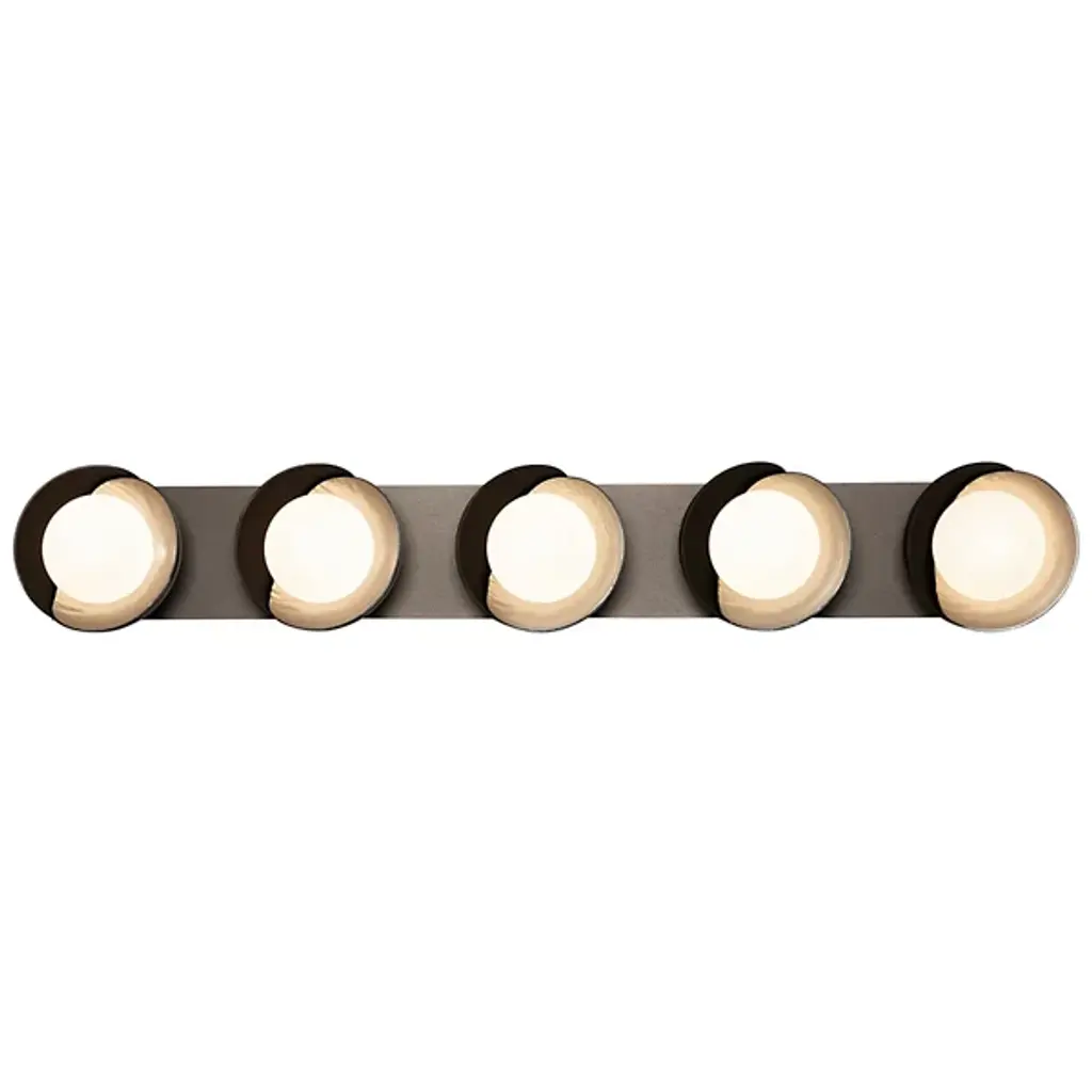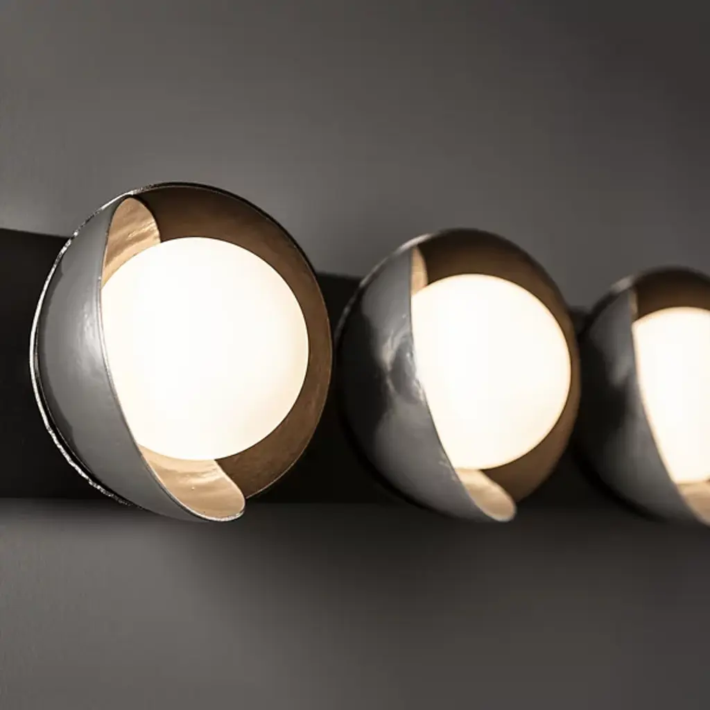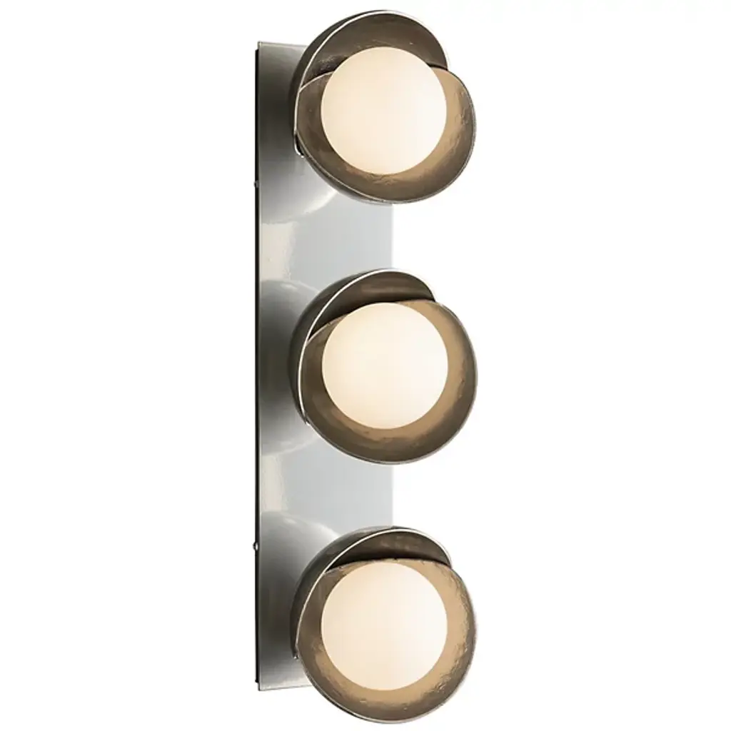 The Brooklyn Straight Double Shade Vanity Light by Hubbardton Forge plays on the idea of movement and flow. Our artisans took curvature to the next level, making a single lid-like shade the focal point of this cluster semi-flushmount light. A unique, forged-steel shade sits at the end of each rod, extending up to a slim circular base and extending down to a globe. The shade on each globe can be adjusted to direct the light as needed. Mount this semi-flushmount fixture in your bedroom, hallway, or foyer.