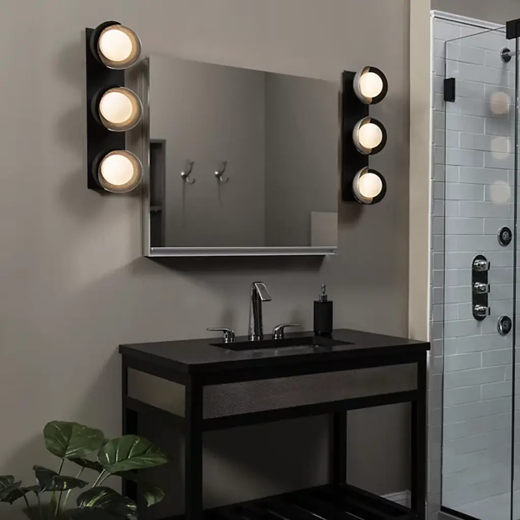 The Brooklyn Straight Double Shade Vanity Light by Hubbardton Forge plays on the idea of movement and flow. Our artisans took curvature to the next level, making a single lid-like shade the focal point of this cluster semi-flushmount light. A unique, forged-steel shade sits at the end of each rod, extending up to a slim circular base and extending down to a globe. The shade on each globe can be adjusted to direct the light as needed. Mount this semi-flushmount fixture in your bedroom, hallway, or foyer.