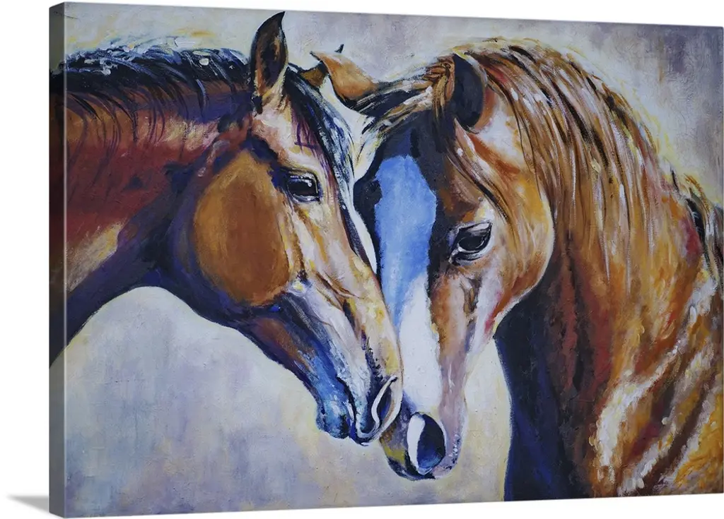 The Brown Amorous Horses canvas art print is sure to make an impression on anyone who sees it. This artwork is gallery wrapped around a 1-inch solid wood frame and arrives carefully packaged and entirely ready to hang on the wall. Design Art only uses the highest resolution and pigments to ensure a crisp colorful print that is never faded or pixelated. This artwork is sure to be a conversation starter in any home or office.