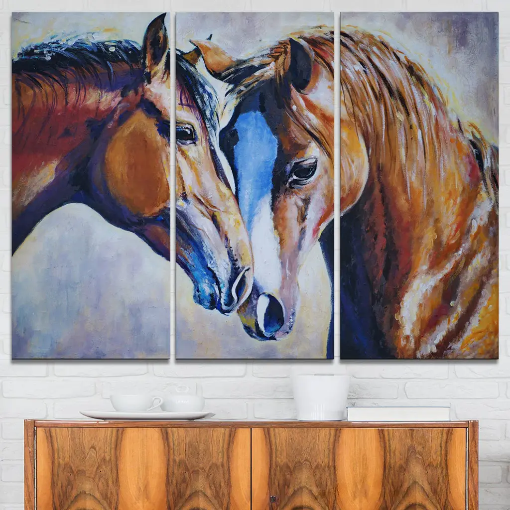 "Brown Amorous Horses" Canvas Print, 3 Panels, 36"x28"