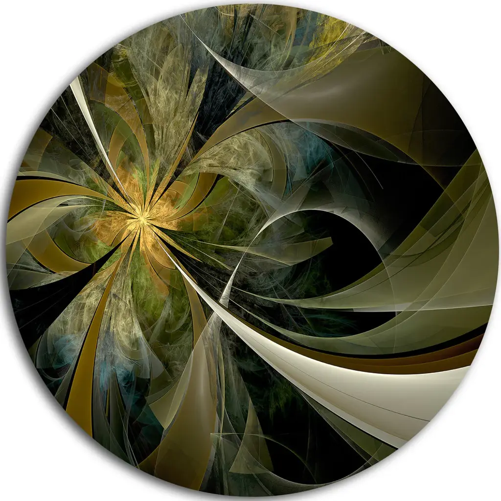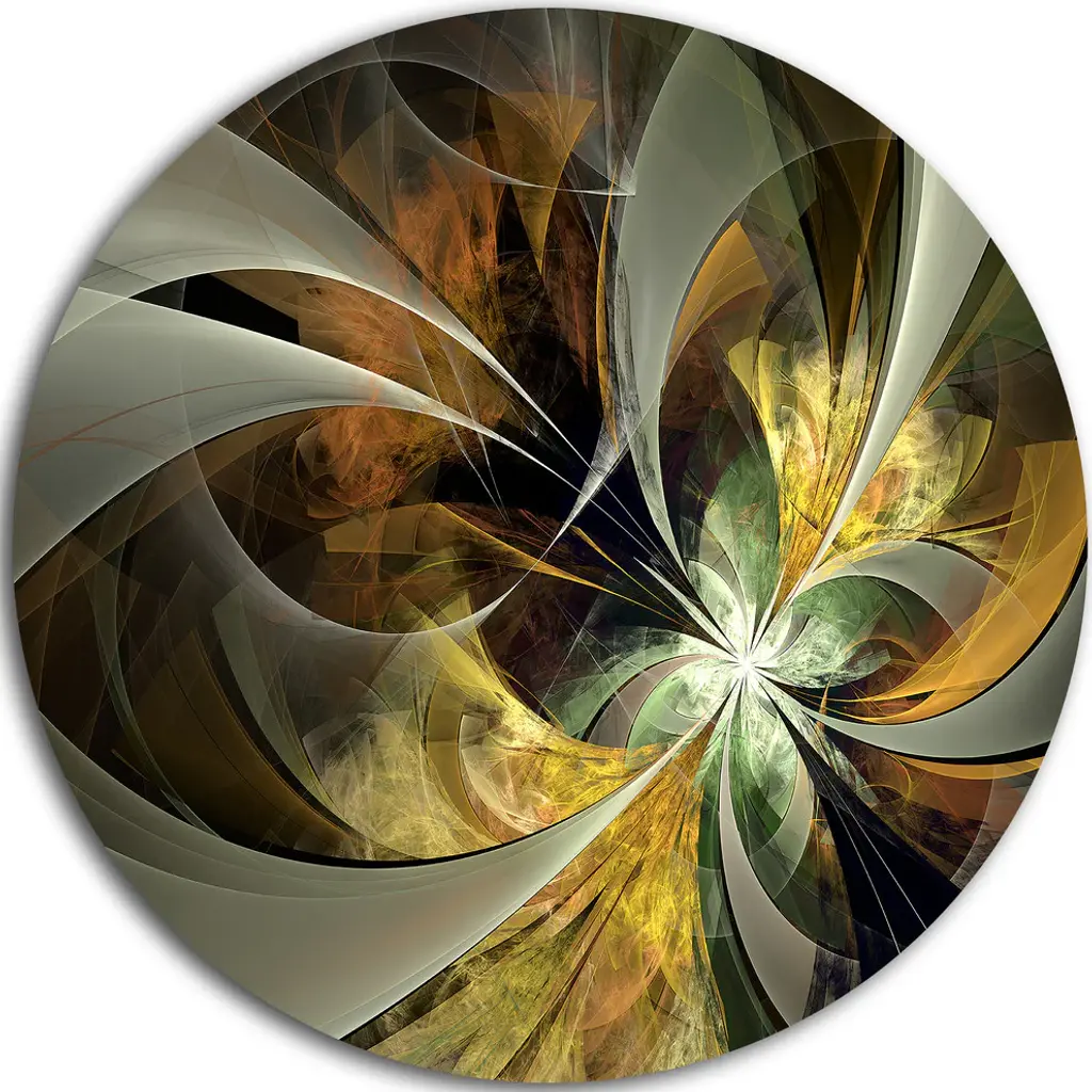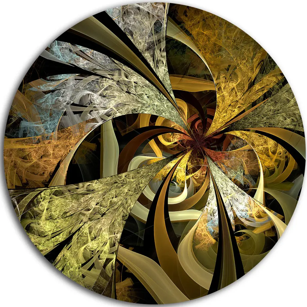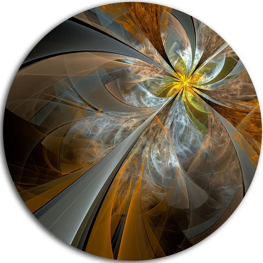 Bring Contemporary Abstraction to your home with this large Circle Metal wall art. This Brown and Gold Symmetrical Fractal Design Metal Artwork makes it the focal point of any room or office. - White Gloss Coating ensures colors are extra vibrant with light reflection.- Aluminum grade Sheet Metal with 1 inch mounting frame on the back giving the illusion that the artwork is floating on the wall..- Mounting Brackets are included along with instructions.- High Quality Digital images are created directly into a glossy aluminum panel producing a stunning and captivating print into the glossy finish of the metal.- Water, Fire and Scratch resistant HD Aluminum panels.- Looks better than any photo paper and guaranteed to last at least 20 years- Easy to clean with a microfiber cloth. Colors are far superior to regular Canvas Art. - Easy to Hang