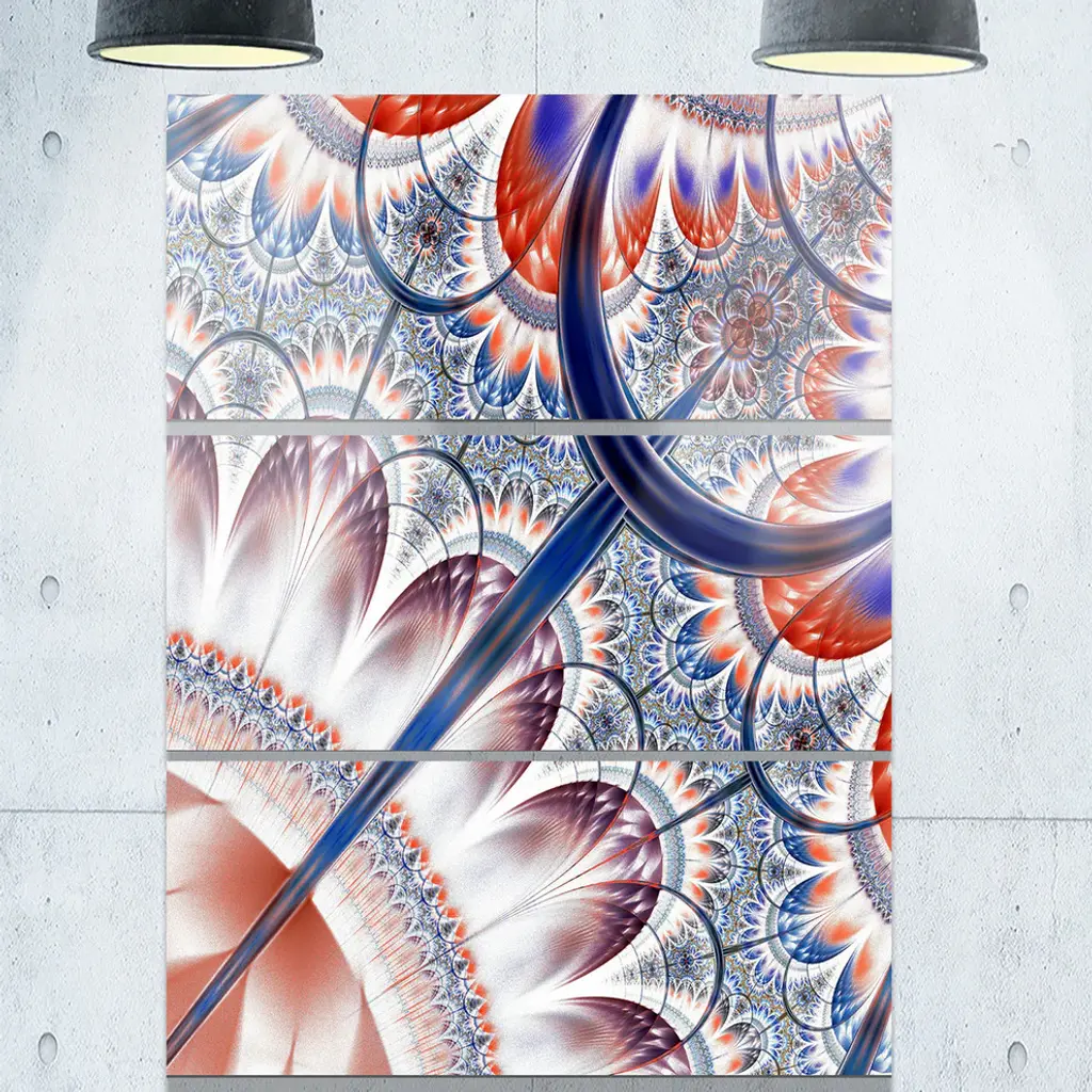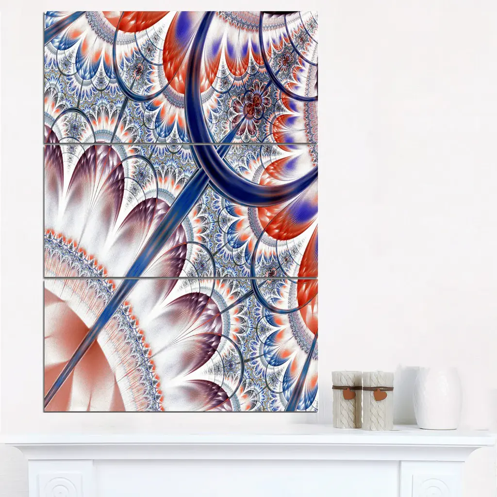 "Brown Blue Fractal Flower Pattern" Metal Wall Art, 3 Panels, 28"x36"