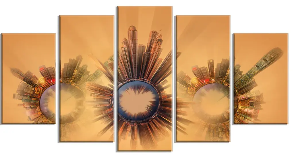 Bring contemporary abstraction to your home with this large 36W x 28H Metal Wall Art. This Brown City Skyline Metal Artwork makes it the focal point of any room or office. - White gloss coating ensures colors are extra vibrant with light reflection.- Aluminum grade sheet metal with 1 inch mounting frame on the back giving the illusion that the artwork is floating on the wall..- Mounting brackets are included along with instructions.- High quality digital images are created directly into a glossy aluminum panel producing a stunning and captivating print into the glossy finish of the metal.- Water, fire and scratch resistant HD aluminum panels.- Looks better than any photo paper and guaranteed to last at least 20 years- Easy to clean with a microfiber cloth. Colors are far superior to regular canvas art. - Easy to hang