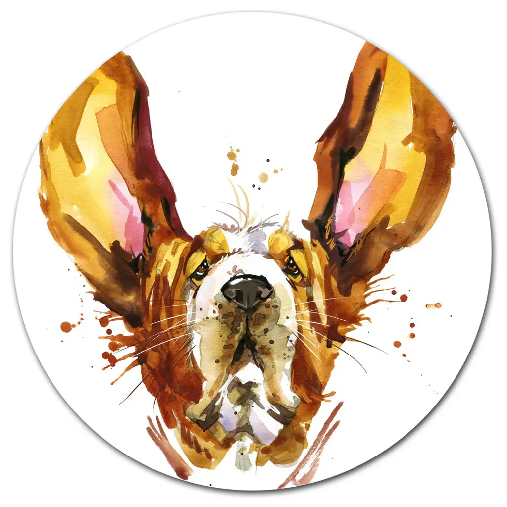 Brown Dog Face Watercolor, Animal Disc Metal Artwork, 11"