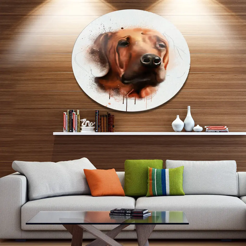 Bring Contemporary Abstraction to your home with this large Circle Metal wall art. This Brown Dog Face Watercolor Metal Artwork makes it the focal point of any room or office. - White Gloss Coating ensures colors are extra vibrant with light reflection.- Aluminum grade Sheet Metal with 1 inch mounting frame on the back giving the illusion that the artwork is floating on the wall..- Mounting Brackets are included along with instructions.- High Quality Digital images are created directly into a glossy aluminum panel producing a stunning and captivating print into the glossy finish of the metal.- Water, Fire and Scratch resistant HD Aluminum panels.- Looks better than any photo paper and guaranteed to last at least 20 years- Easy to clean with a microfiber cloth. Colors are far superior to regular Canvas Art. - Easy to Hang