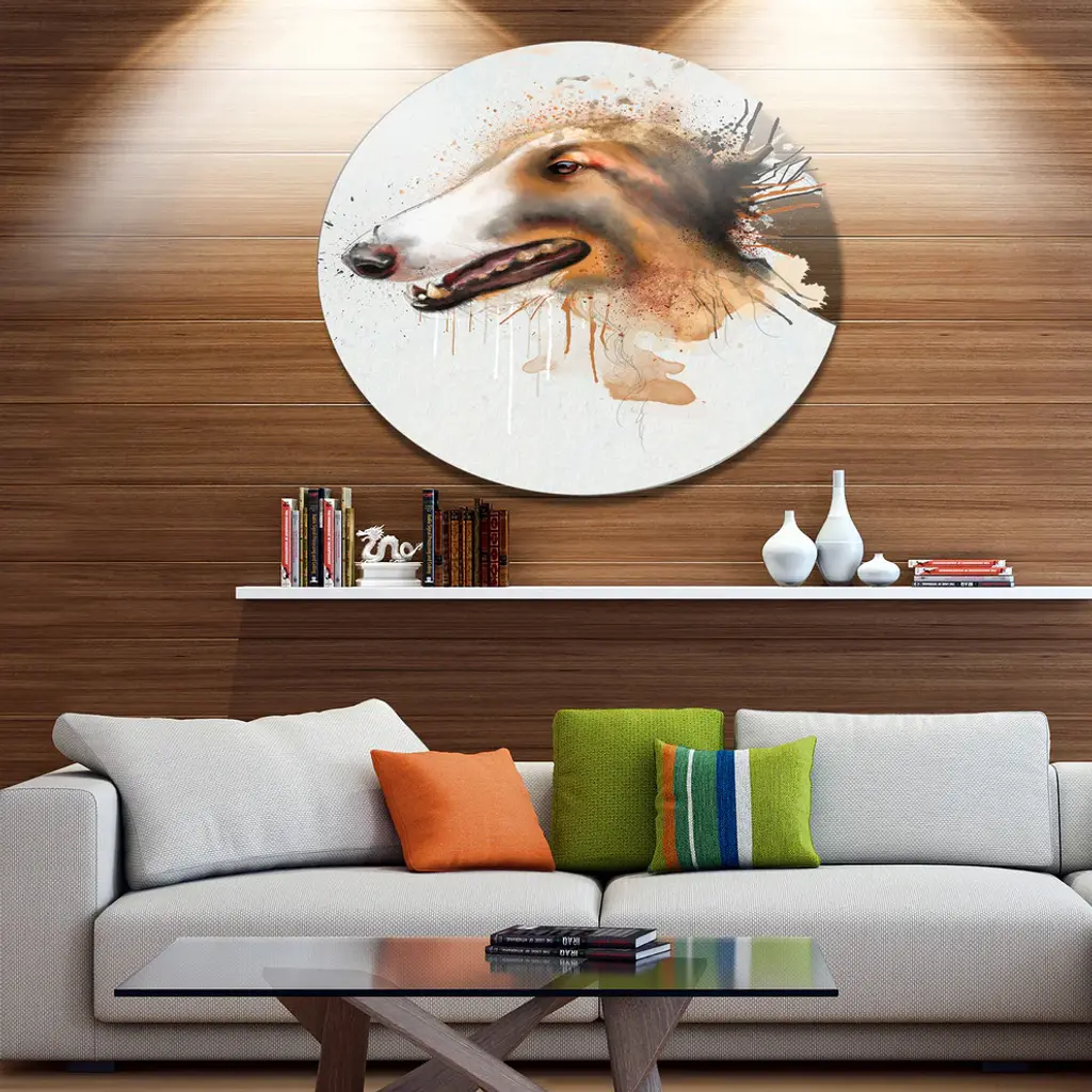 Bring Contemporary Abstraction to your home with this large Circle Metal wall art. This Brown Dog Portrait Watercolor Metal Artwork makes it the focal point of any room or office. - White Gloss Coating ensures colors are extra vibrant with light reflection.- Aluminum grade Sheet Metal with 1 inch mounting frame on the back giving the illusion that the artwork is floating on the wall..- Mounting Brackets are included along with instructions.- High Quality Digital images are created directly into a glossy aluminum panel producing a stunning and captivating print into the glossy finish of the metal.- Water, Fire and Scratch resistant HD Aluminum panels.- Looks better than any photo paper and guaranteed to last at least 20 years- Easy to clean with a microfiber cloth. Colors are far superior to regular Canvas Art. - Easy to Hang