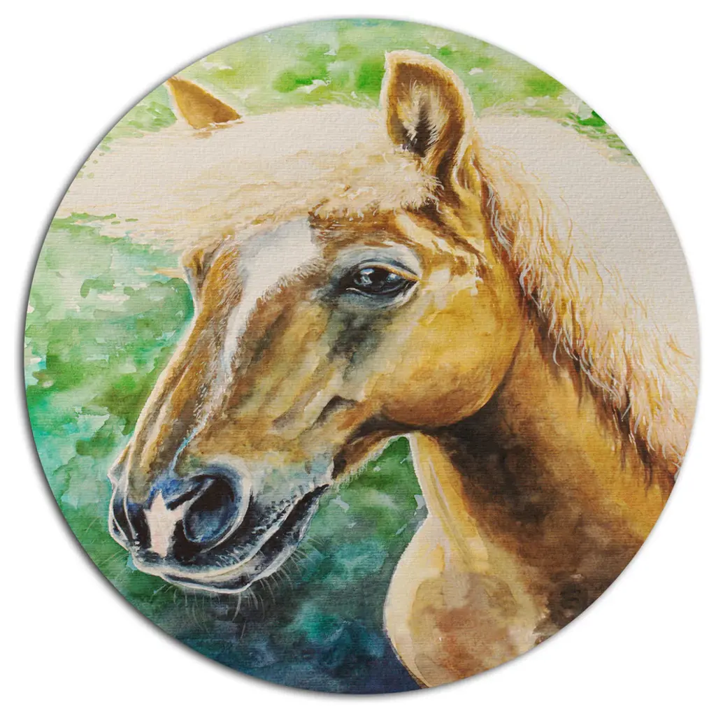 Brown Horse On Blue Watercolor, Animal Round Wall Art, 23"