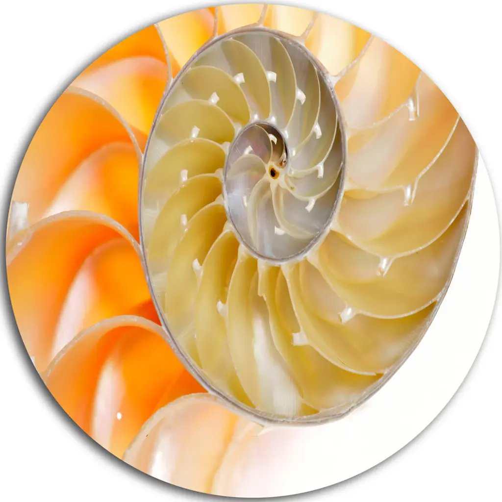 Bring contemporary abstraction to your home with this large 36W x 28H Metal Wall Art. This Brown Nautilus Shell Pattern Metal Artwork makes it the focal point of any room or office. - White gloss coating ensures colors are extra vibrant with light reflection.- Aluminum grade sheet metal with 1-inch mounting frame on the back giving the illusion that the artwork is floating on the wall.- Mounting brackets are included along with instructions.- High quality digital images are created directly into a glossy aluminum panel producing a stunning and captivating print into the glossy finish of the metal.- Water, fire and scratch resistant HD aluminum panels.- Looks better than any photo paper and guaranteed to last at least 20 years- Easy to clean with a microfiber cloth. Colors are far superior to regular canvas art. - Easy to hang