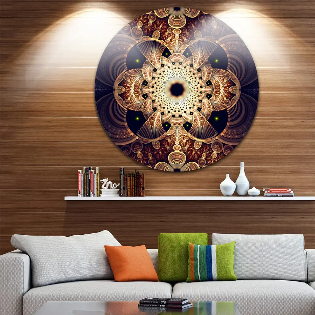 Bring Contemporary Abstraction to your home with this large Circle Metal wall art. This Brown Red Fractal Flower Pattern Digital Metal Artwork makes it the focal point of any room or office. - White Gloss Coating ensures colors are extra vibrant with light reflection.- Aluminum grade Sheet Metal with 1 inch mounting frame on the back giving the illusion that the artwork is floating on the wall..- Mounting Brackets are included along with instructions.- High Quality Digital images are created directly into a glossy aluminum panel producing a stunning and captivating print into the glossy finish of the metal.- Water, Fire and Scratch resistant HD Aluminum panels.- Looks better than any photo paper and guaranteed to last at least 20 years- Easy to clean with a microfiber cloth. Colors are far superior to regular Canvas Art. - Easy to Hang