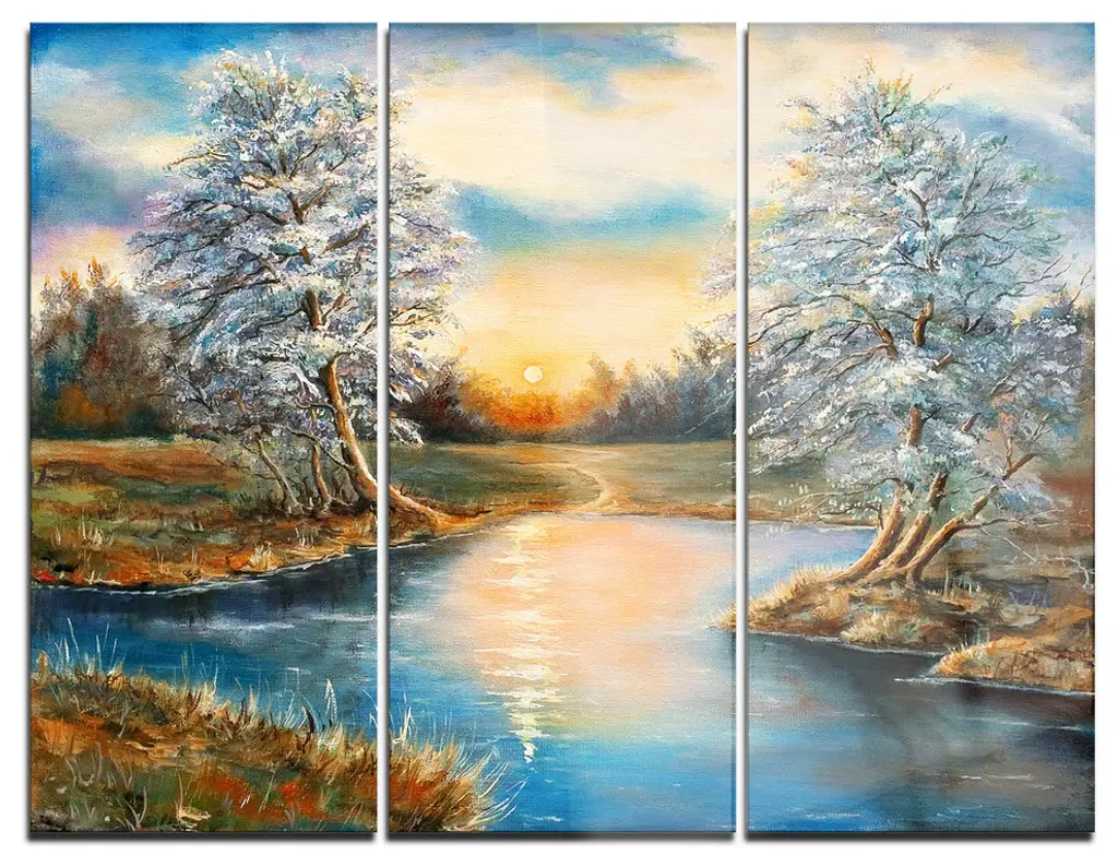 "Brown River In Forest" Metal Wall Art, 3 Panels, 36"x28"